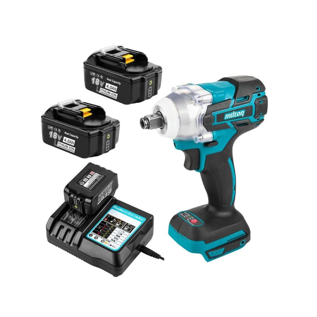 Hiiliharjaton iskevä mutterinväännin 520Nm + 2kpl 4Ah Real Capacity akkua ja Pikalaturi| Makita yhteensopiva |, Turku