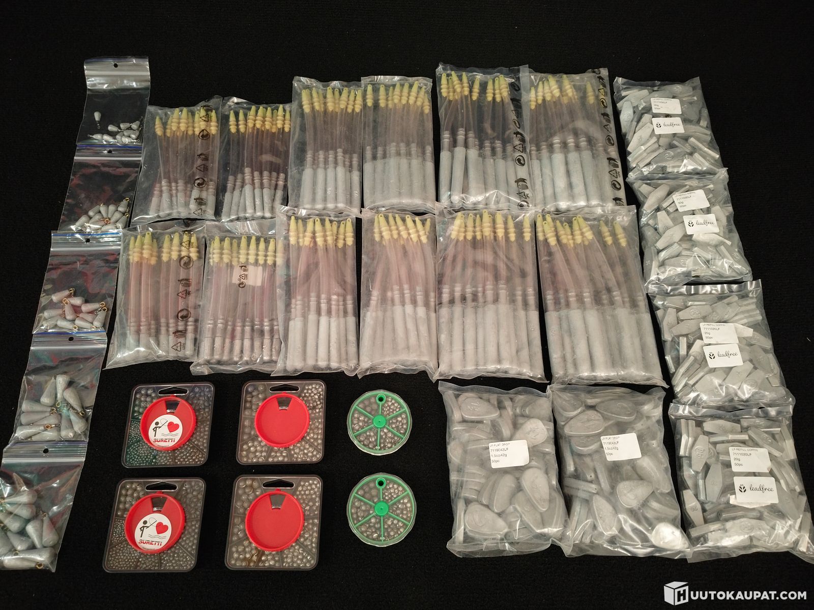 Jättierä lyijyttömiä kalastuspainoja -470 kpl + 6 rasiaa, Lohja