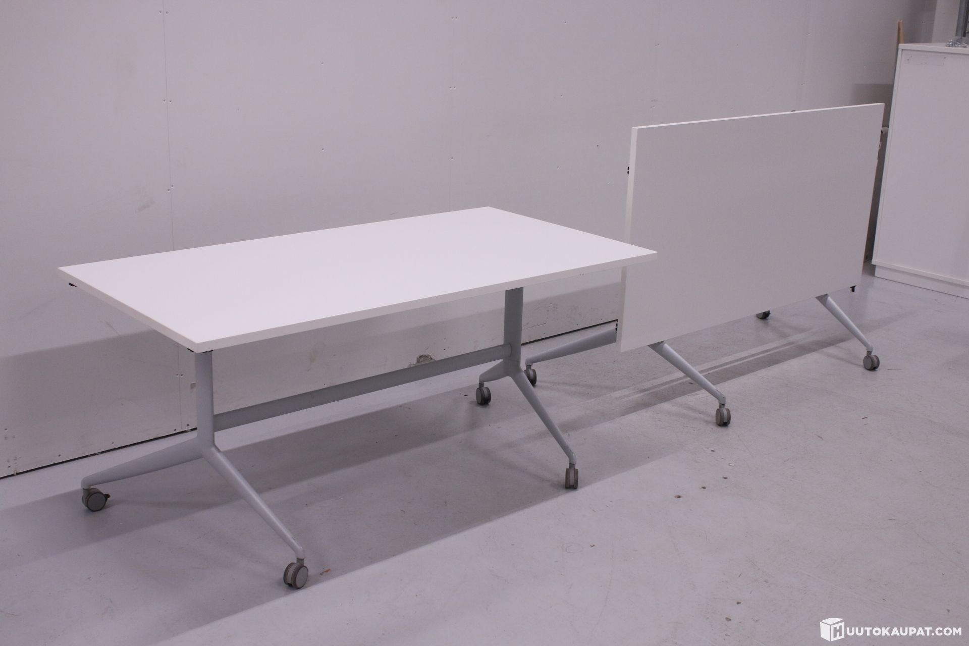 Two folding tables. The tables have lockable castors.