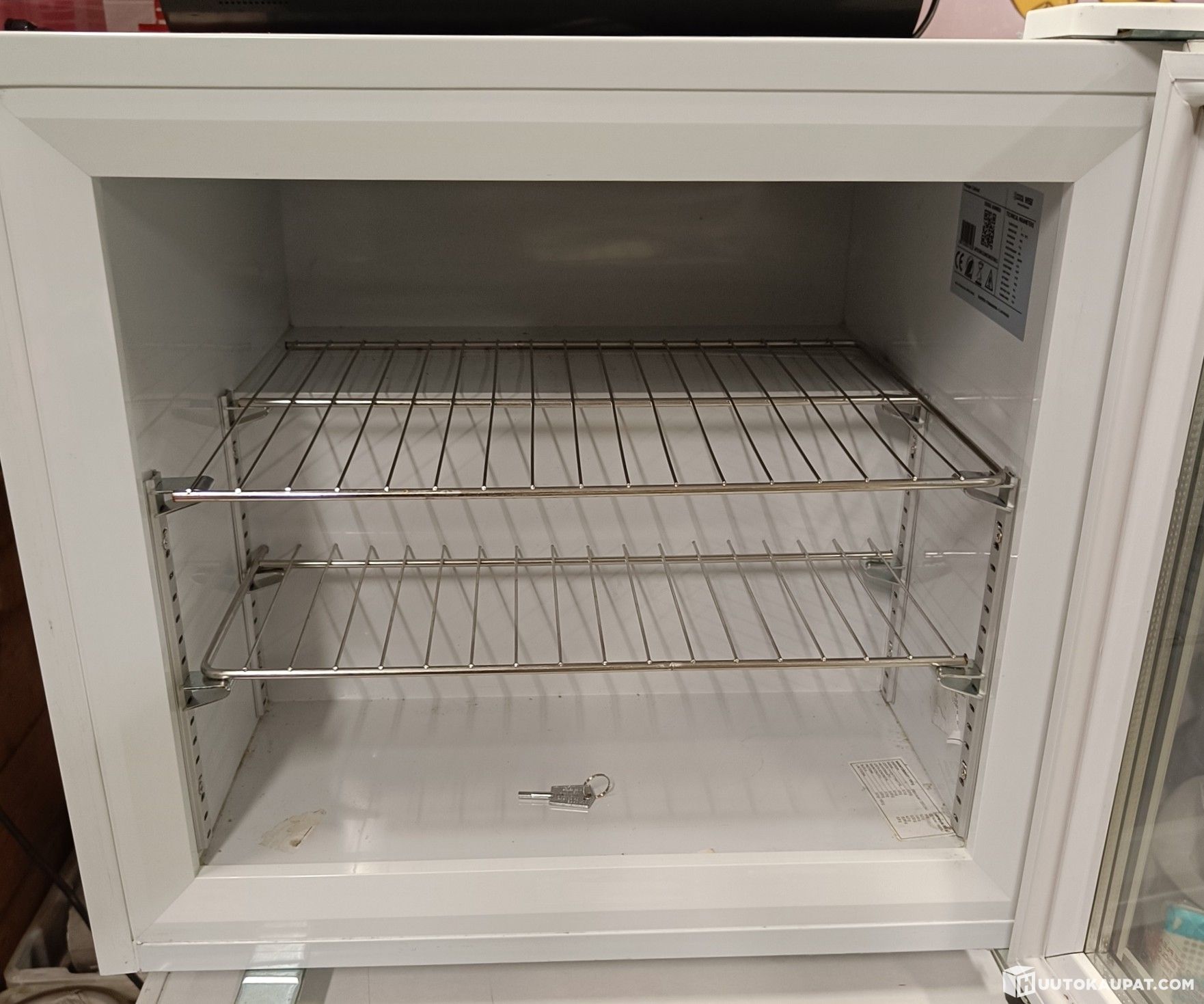Used lockable glass-fronted undercounter freezer. Dimensions approx: (W×H×D) 57×52×53 cm. More technical details can be found on the type plate in the photo. See the seller's other items and you are welcome to inspect it in person.