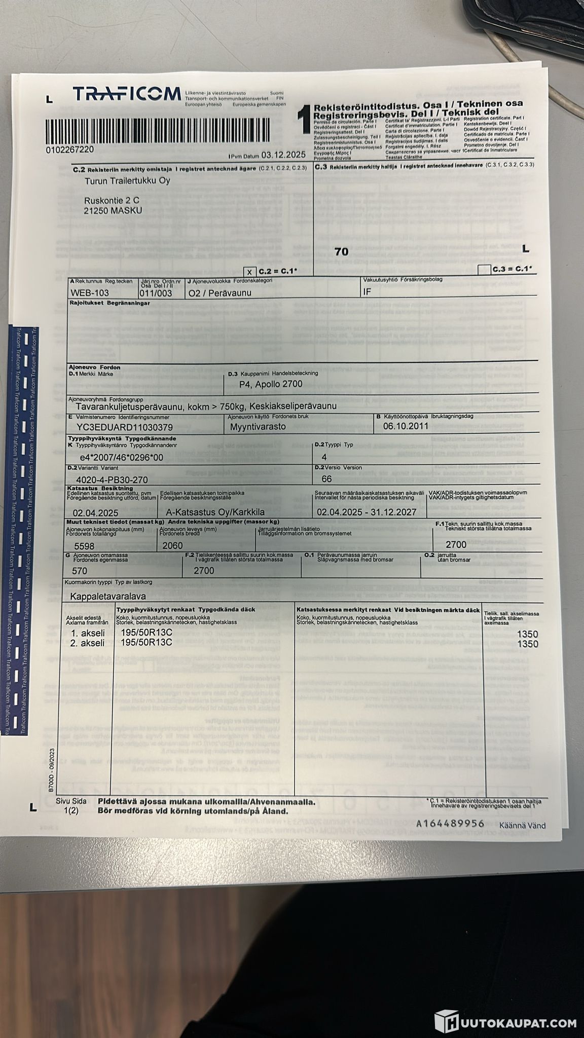 Turun Trailertukku Oy lists, Huutokaupat.com sells