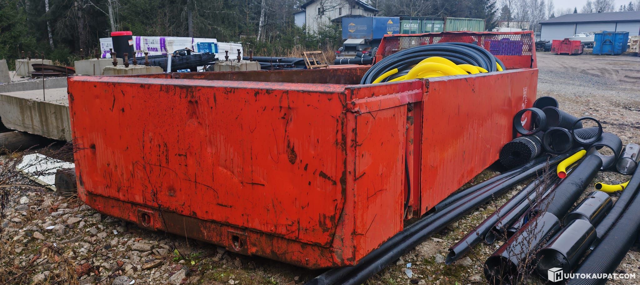 Used gravel skip suitable for a hooklift, length 5.5 m and side height 90 cm.