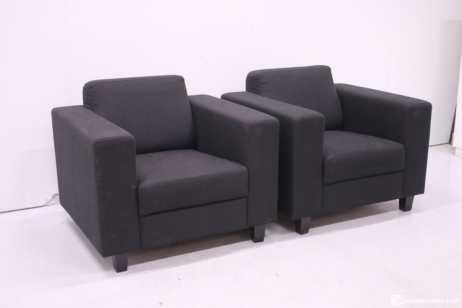 Two black sofa chairs. In good condition, no structural defects and the upholstery is intact on both.