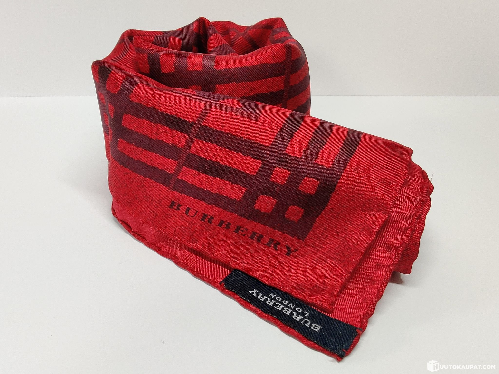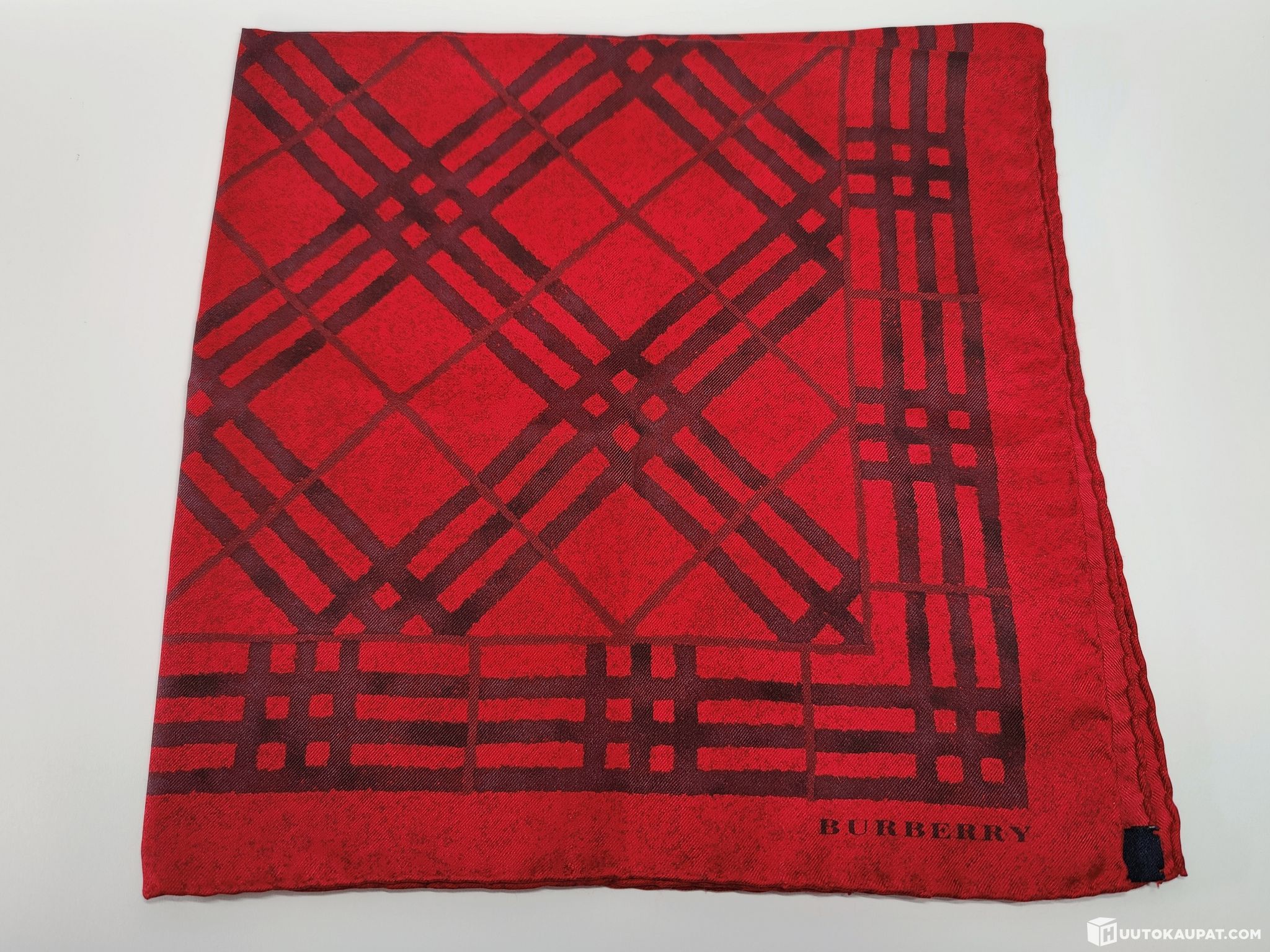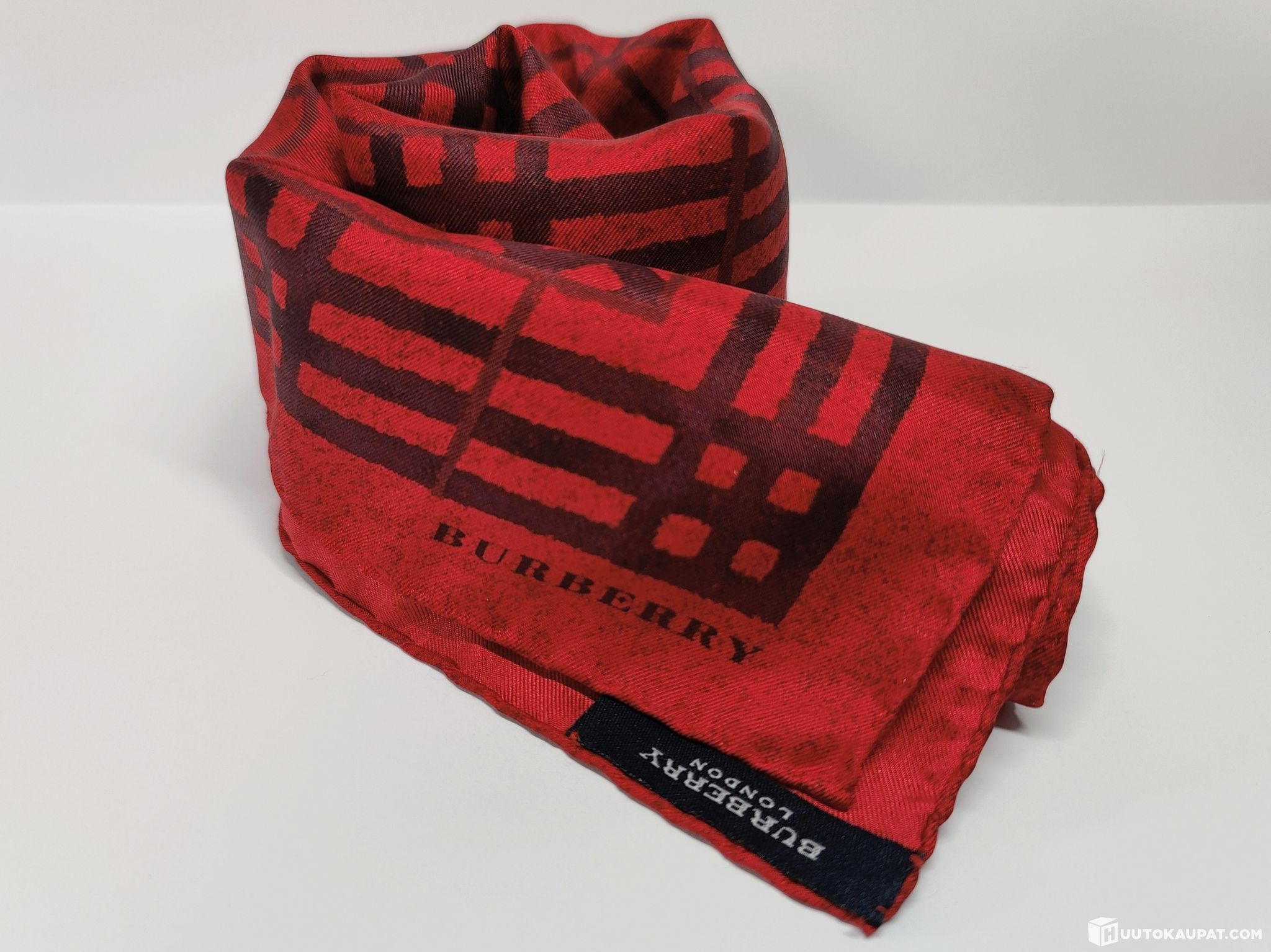 Stylish and timeless Burberry check-pattern silk scarf.