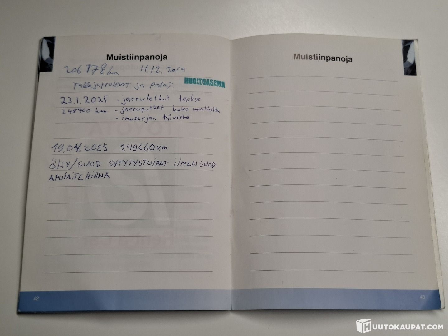 Latest service entry: 249,000 km / 19 April 2025