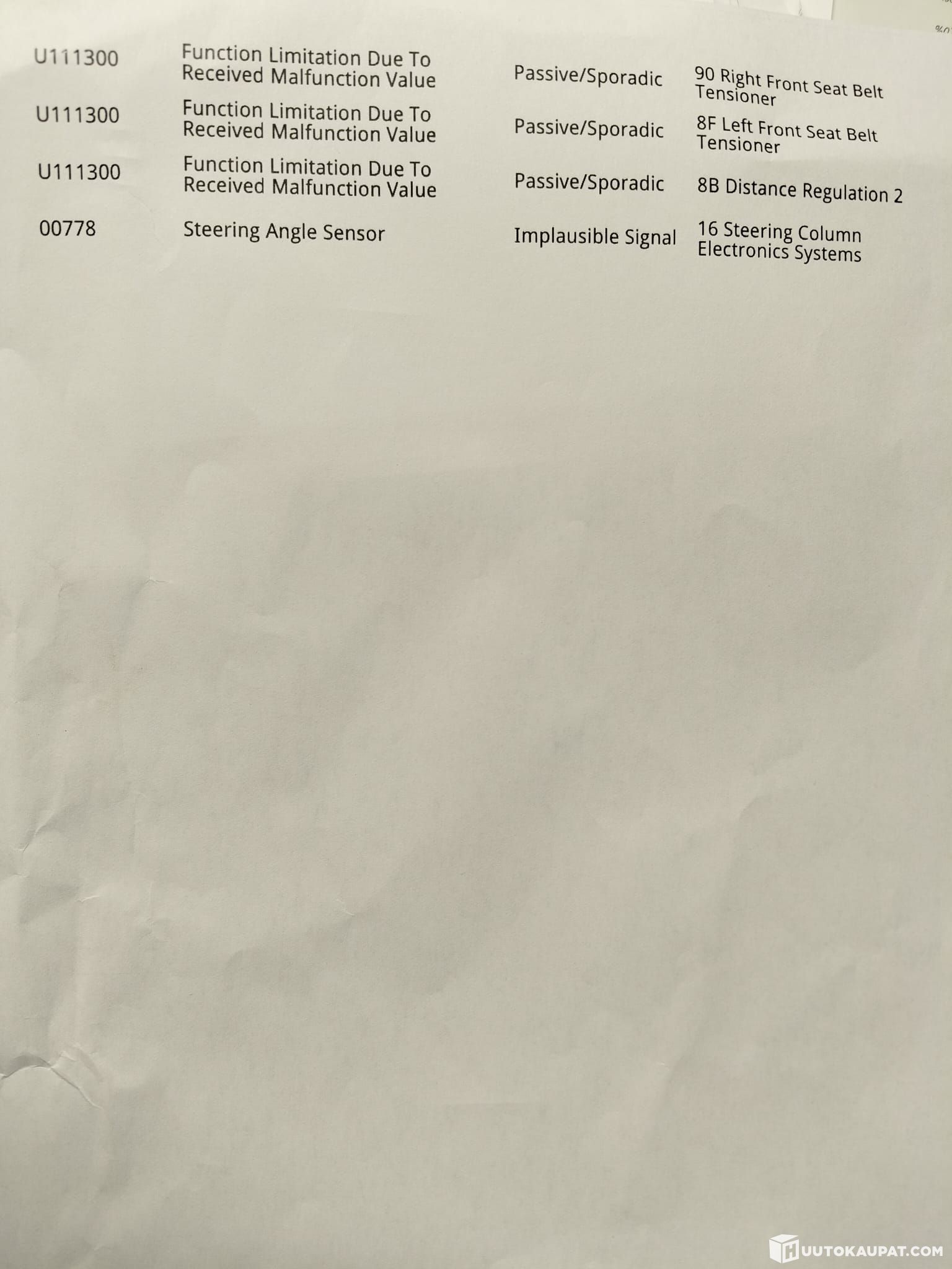 - Error codes were read, see photos
