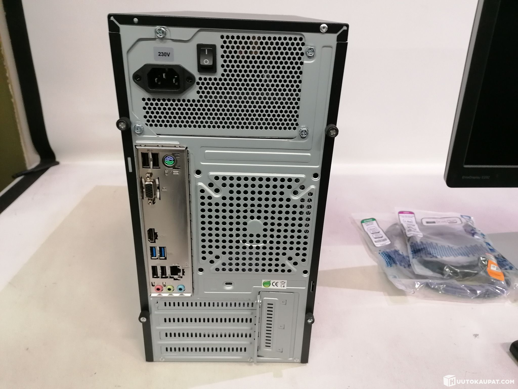 Included: HP business monitor Full HD (details below), mouse, keyboard, power cable, HDMI cable and Ethernet cable for the PC.