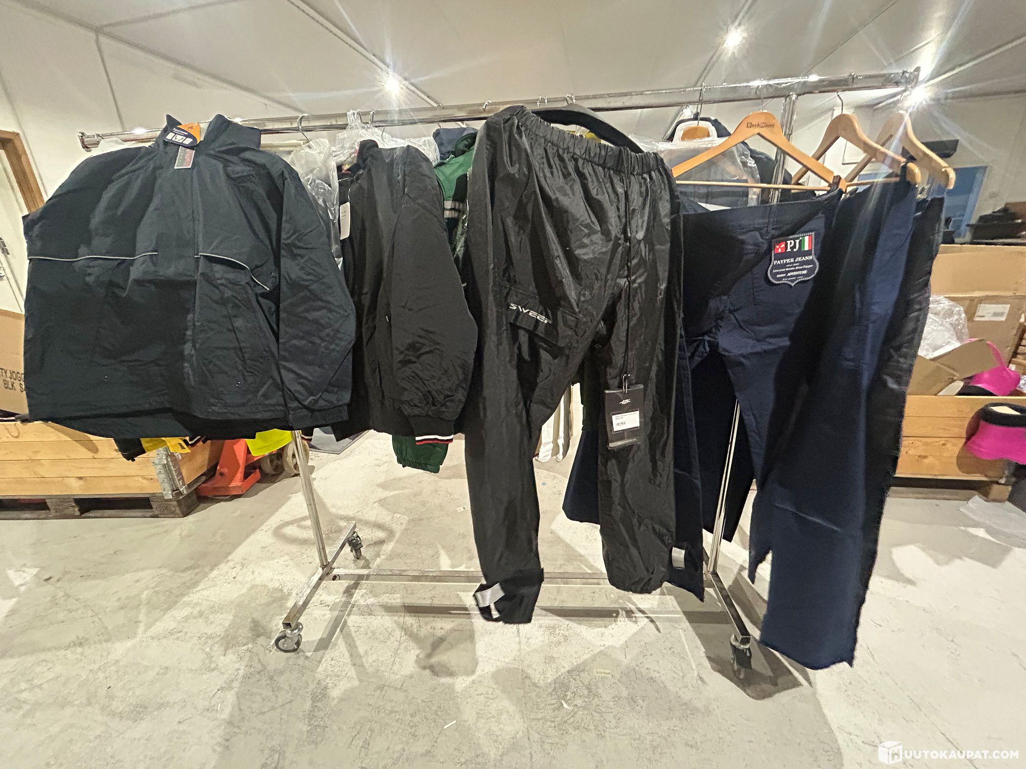 End-of-stock lot: 50 items/pairs. Various jackets, winter coats, shirts, work trousers and other clothes. 37 items — sizes: XS–XXL