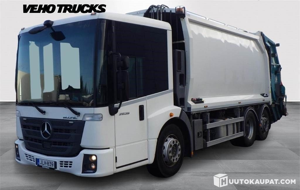 Fuel-fired water auxiliary heater, cab, axle weight indicator, start-assist (load-relief), no time restriction, Automatic gearbox 6/3, 49-0, 65, Allison 3200 P, bogie axle 7.5 t, steering, liftable, parking brake, lift/lower function, engine brake, high power, PTO (automatic gearbox) at 3 o'clock for pump, slow. WASTE COMPACTOR NORBA RL-300, L200, Model 22H25 (20.8 m3), Cycle time 19–22 s. Compression force 2.4 kg/cm², loading grab volume 1.7 m3, Max. operating pressure 255 bar, hopper floor 6 mm, tailgate sides 6 mm, tailgate floor 8 mm Hardox 500 special steel, main pressure pipe steel, adjustable special seal between hopper and tailgate, seal up to top, automatic bin sensor (lift raises the bin automatically off the ground), Bin lift L200, lifting capacity 800 kg, LED work lights and beacons, Adjustable displacement pump TXV 120, Surveillance camera Brigade BE 870-100, Cab controls, emptying functions from cab, back-pressure control with 10% steps,