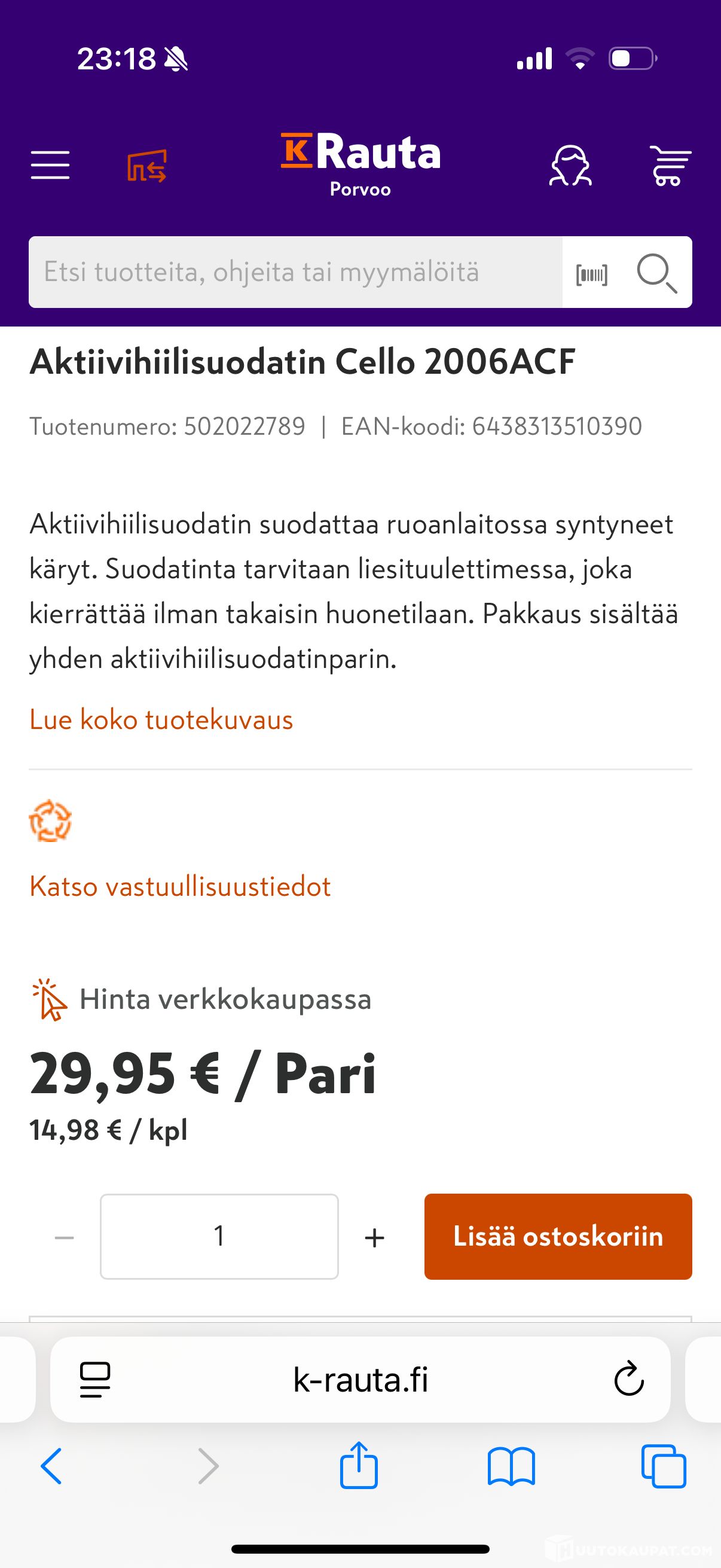 Delivery costs apply to mainland Finland.
