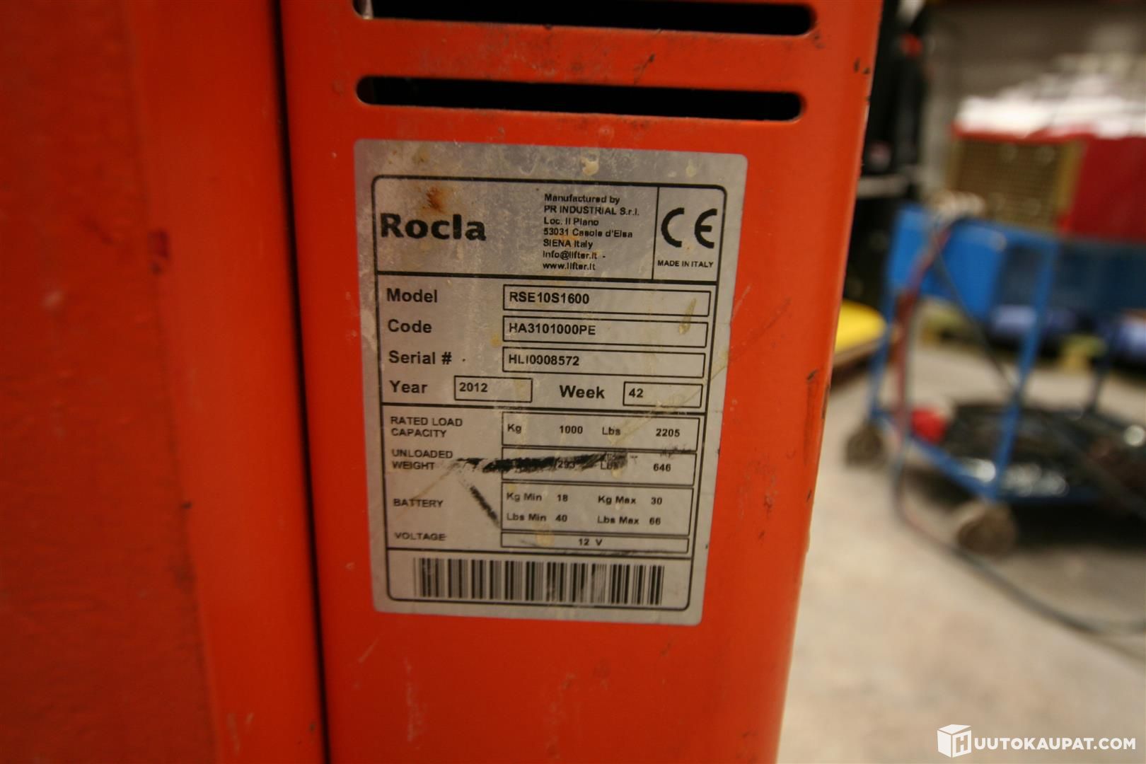 Lifting is electric-hydraulic, powered by a 12 V battery and includes a charger. Good working order.