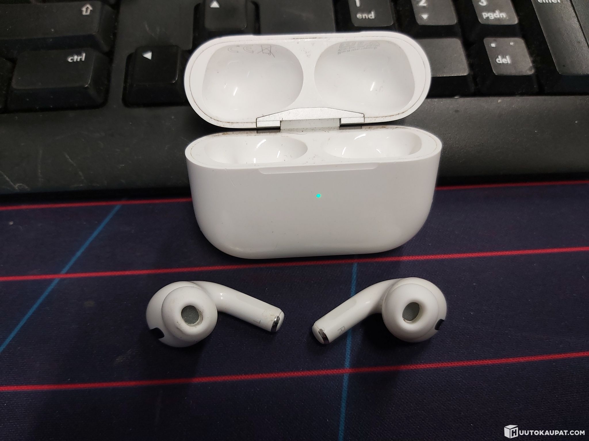 Used. Includes ear tips, charging case and charger. Ear tips size M