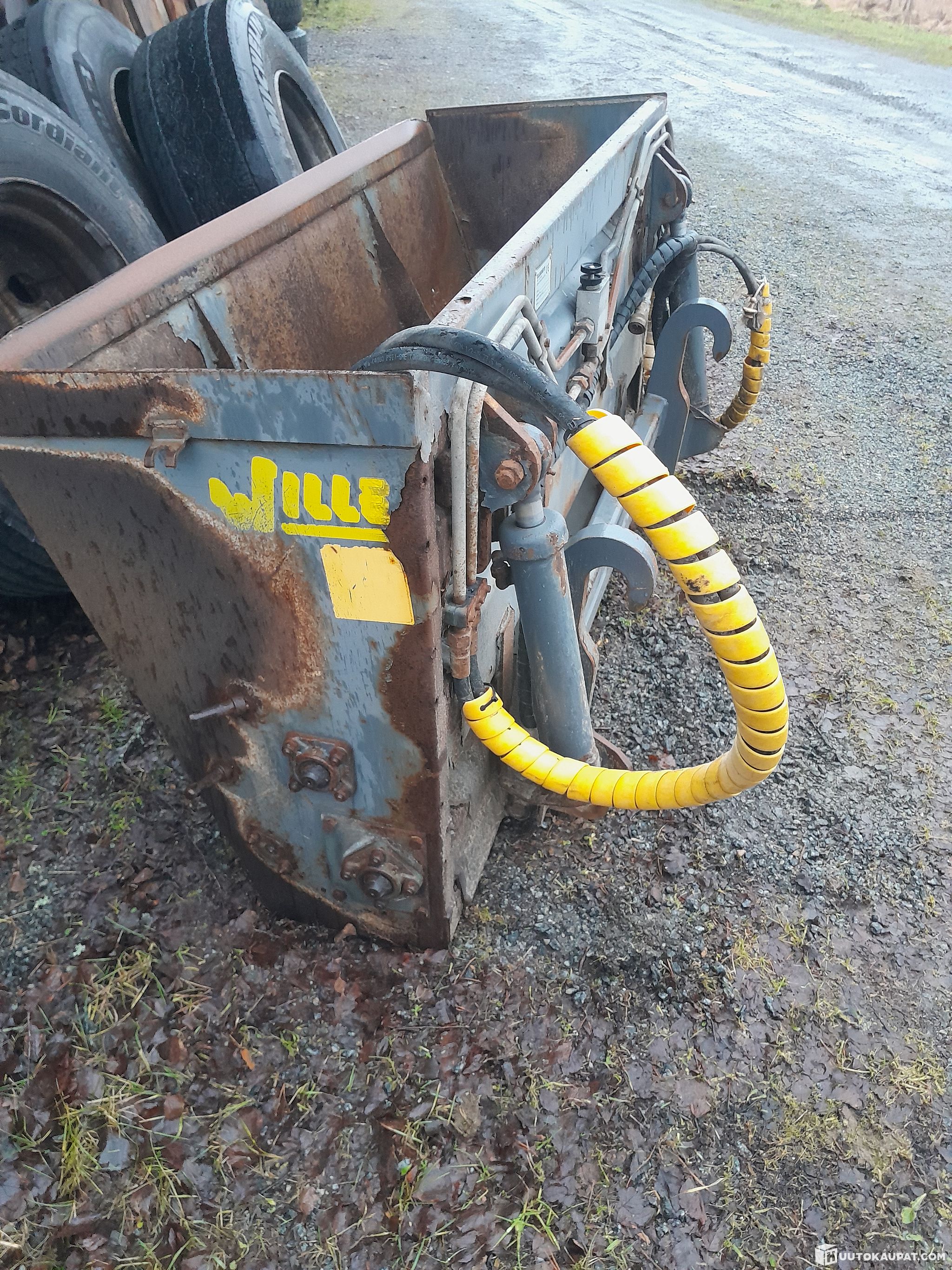 Working Vila 550 tipping grit spreader with municipal fittings. Came with the machine; not used by us but tested and operational. Chassis shows only light surface wear, rubber intact; engine holds its oil. Fits a Wille directly.