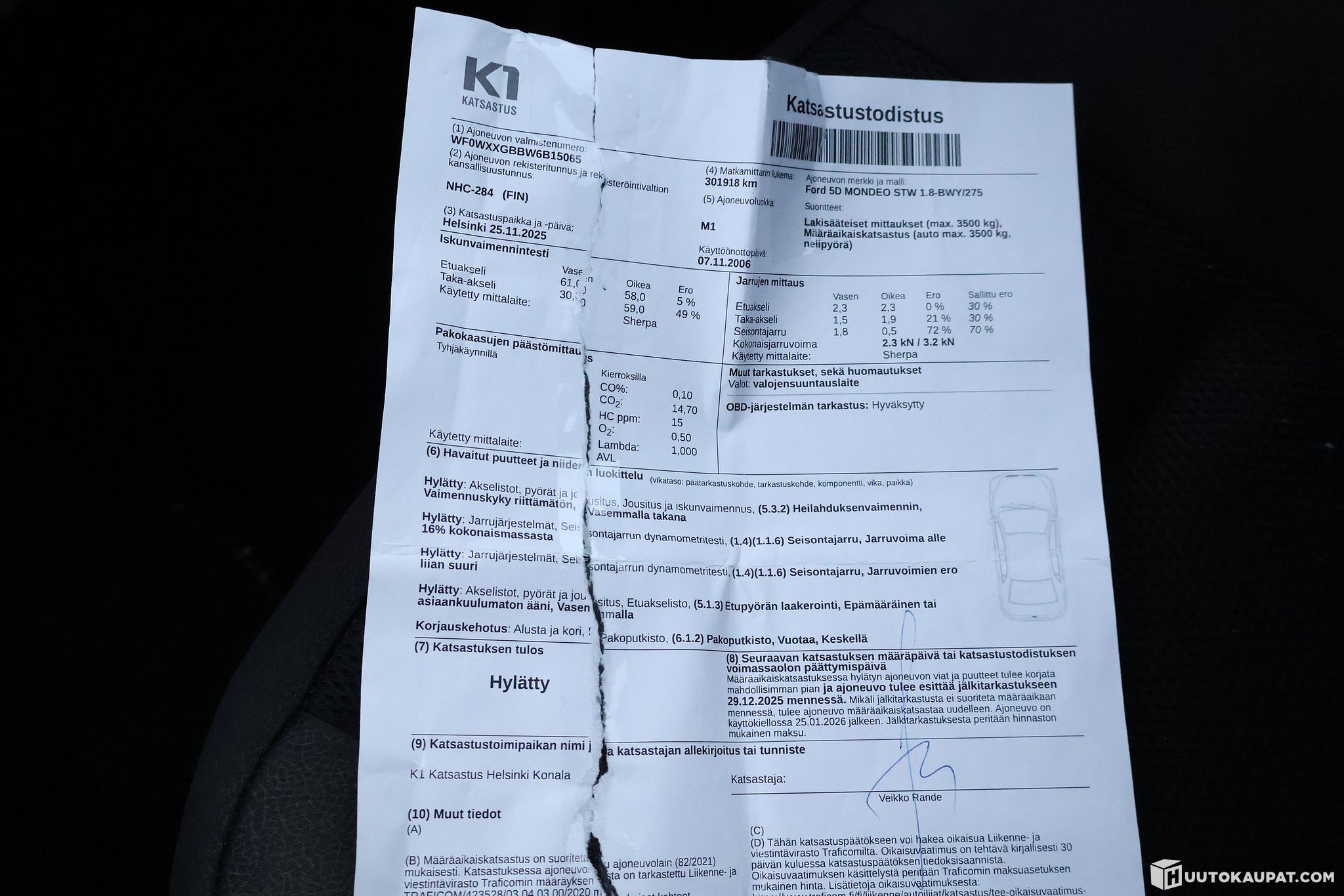 - Car failed inspection, see fault list in the pictures — driving permit until 25 January 2026.