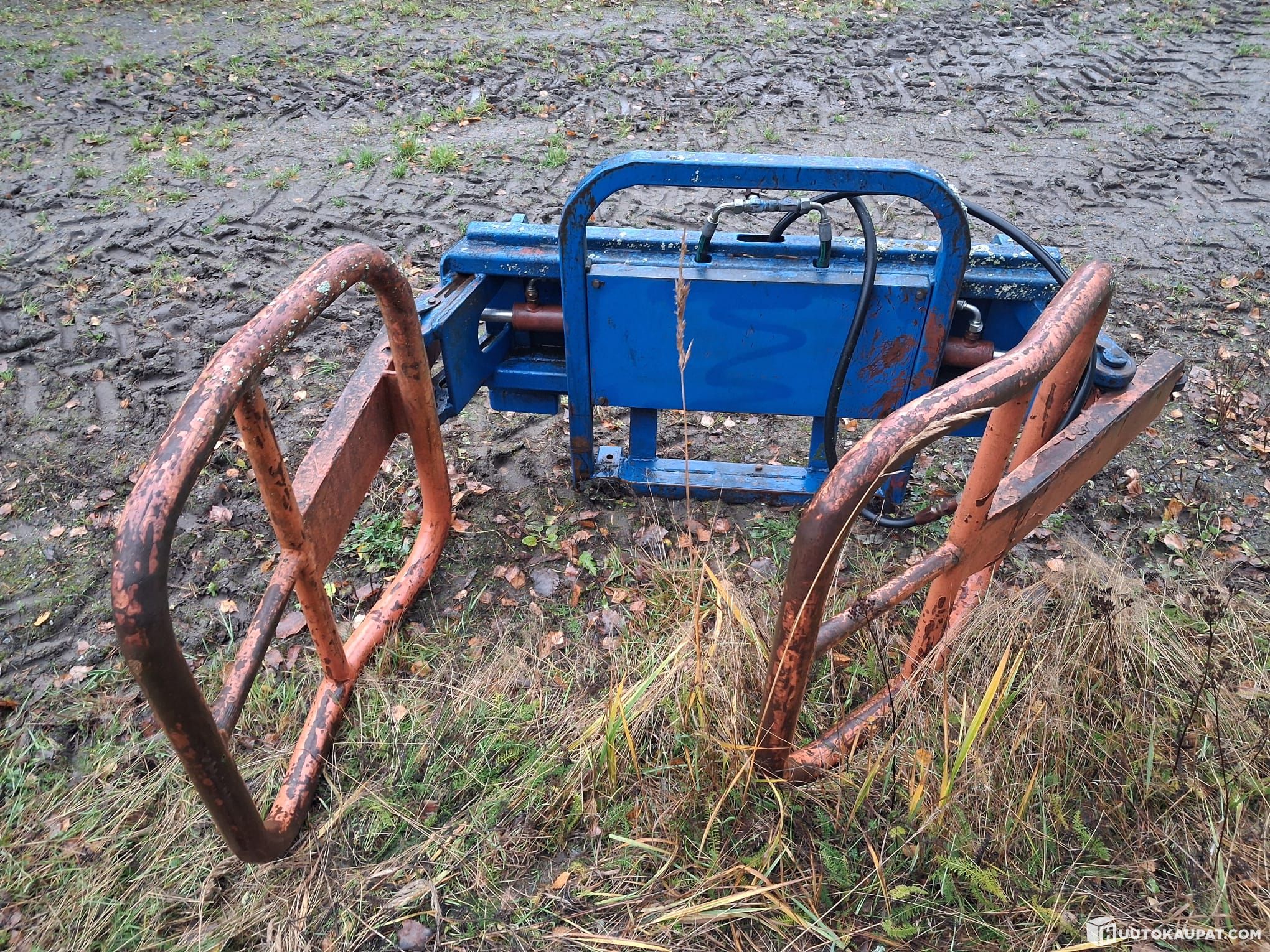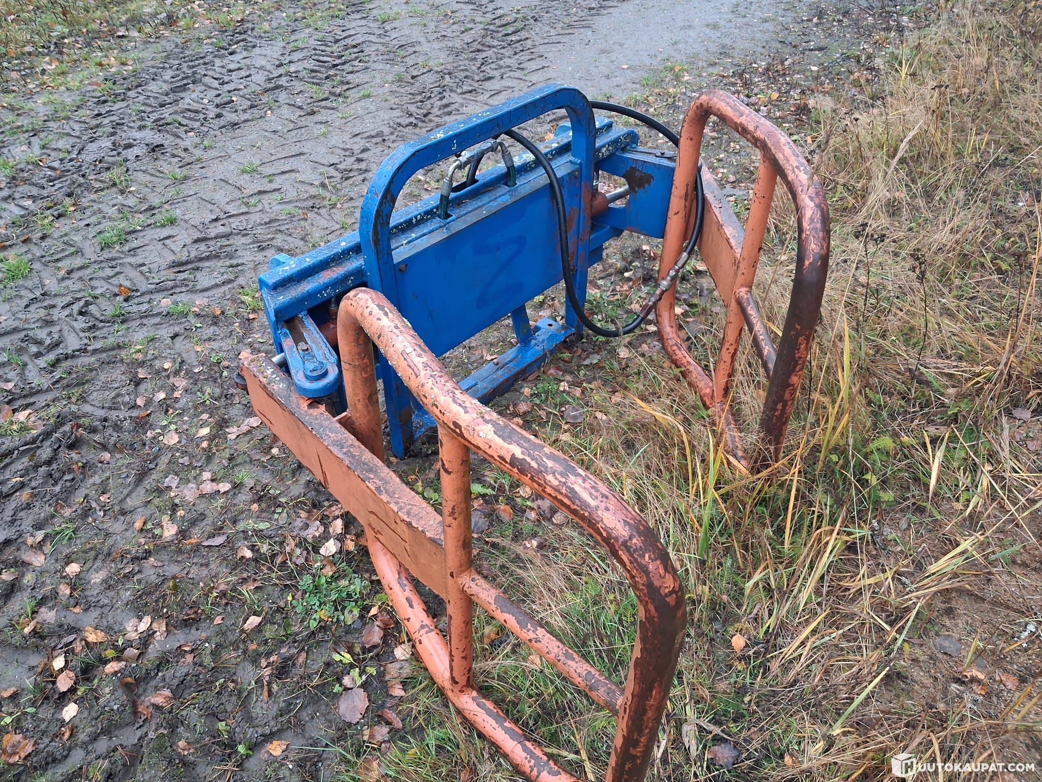Bale tongs for handling, e.g. round bales. 1/2" (12.7 mm) tractor connector, EURO mount, hydraulically opening/closing clamp.