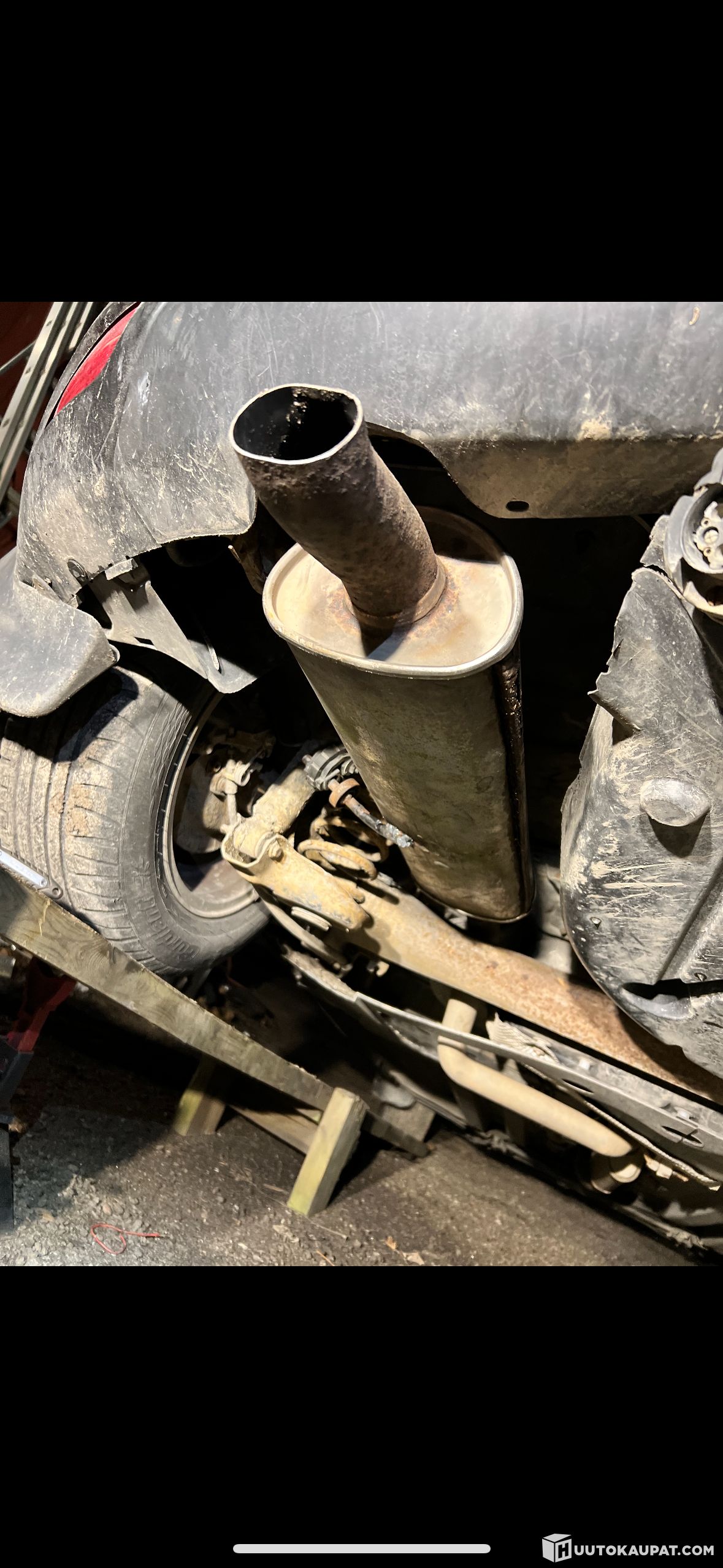 Exhaust system Main inspection area: Chassis and body, (6.1.2) Exhaust system, Not compliant with regulations, Repair recommended, To be repaired by 11 January 2026. Repaired, see picture