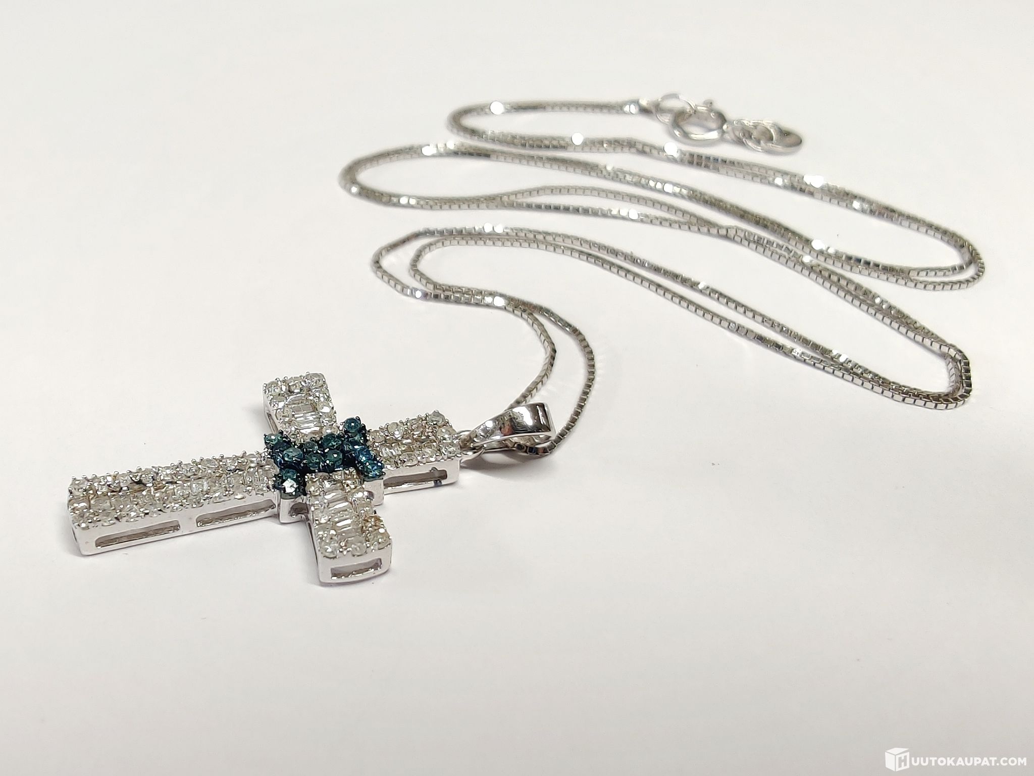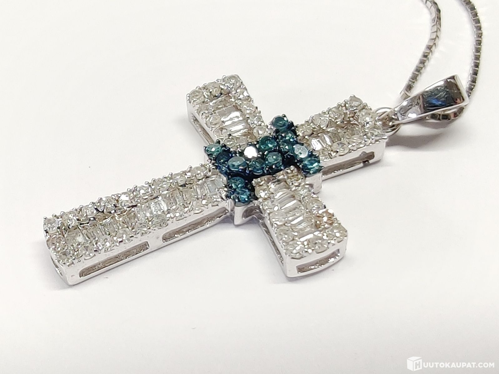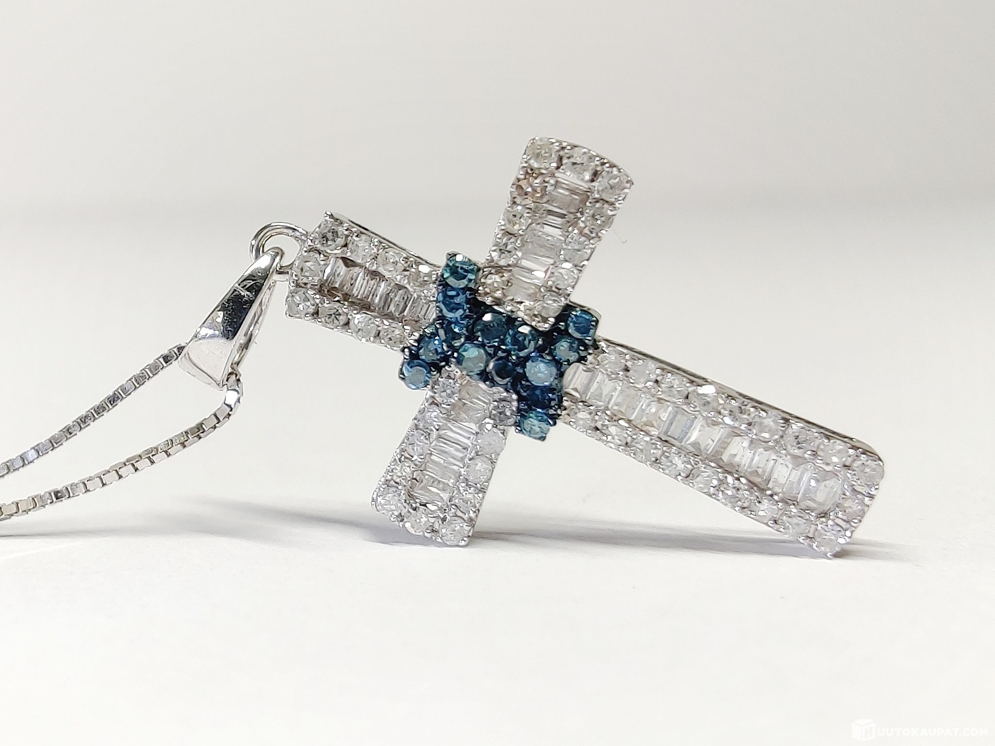 A truly stunning cross-themed diamond necklace; pendant 750 (18k) and chain 585 (14k) white gold.