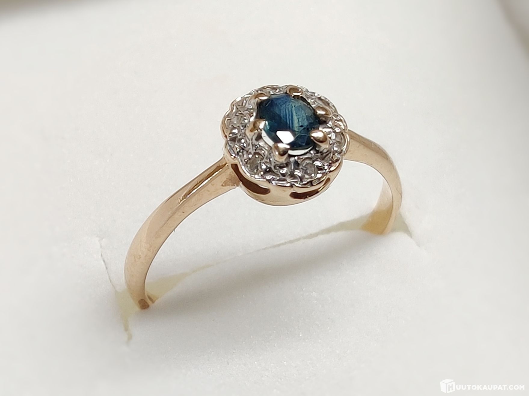 Kultainen safiirisormus (Rajamäki Heikki, Helsinki, v. 1968) 585 14k, Mikkeli