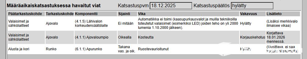 The car has been used daily and failed inspection — see the fault list in the pictures!