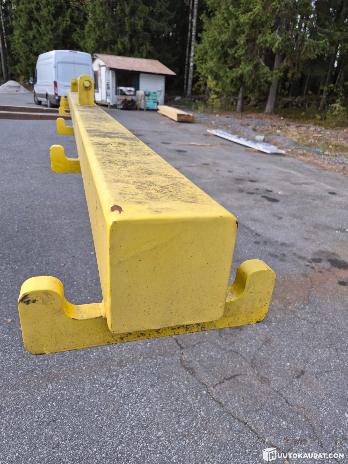 For auction: lifting beam as shown in the pictures. The handle is new, only dirty from being moved out of the way. It has never been used — as seen in the photos, the paint is unworn.