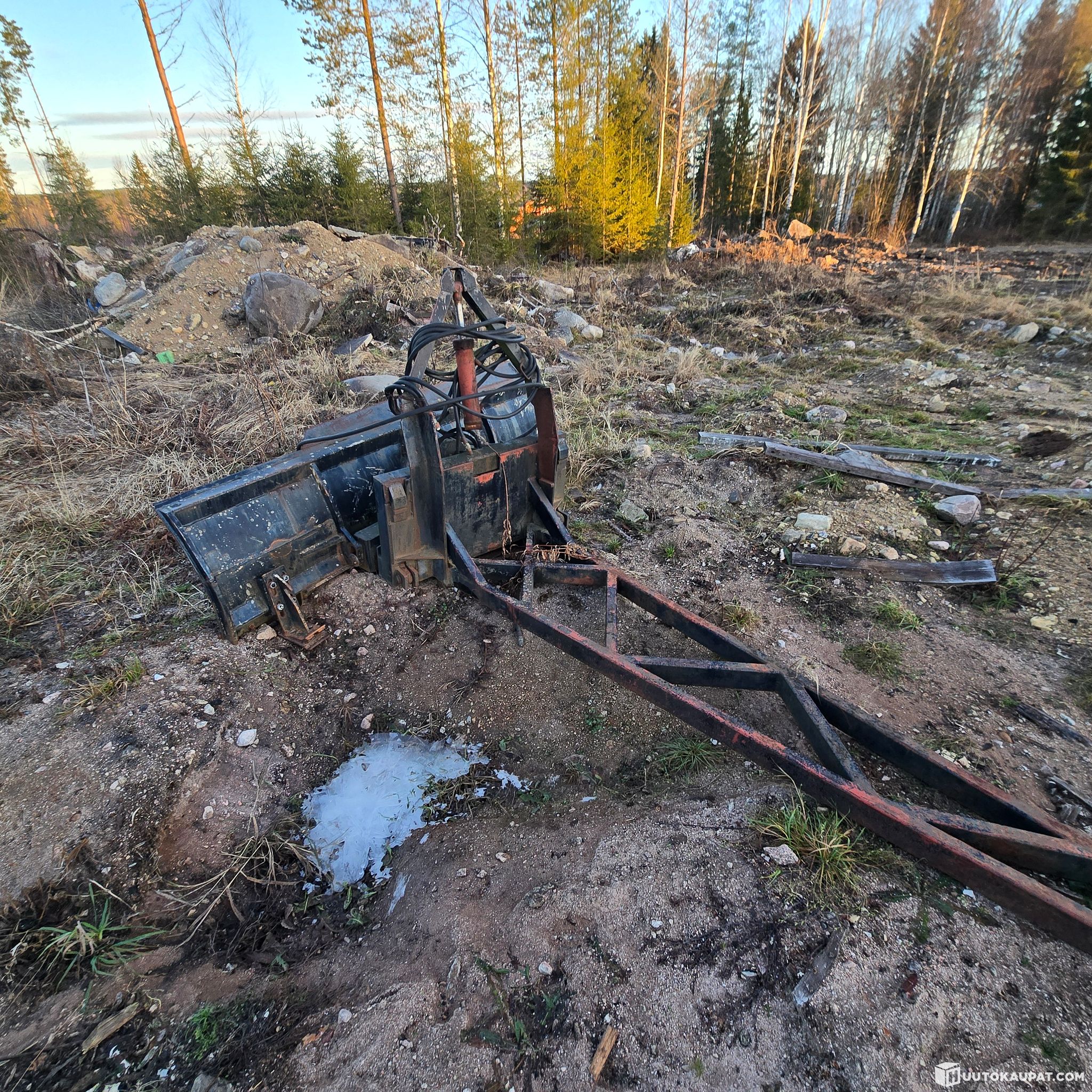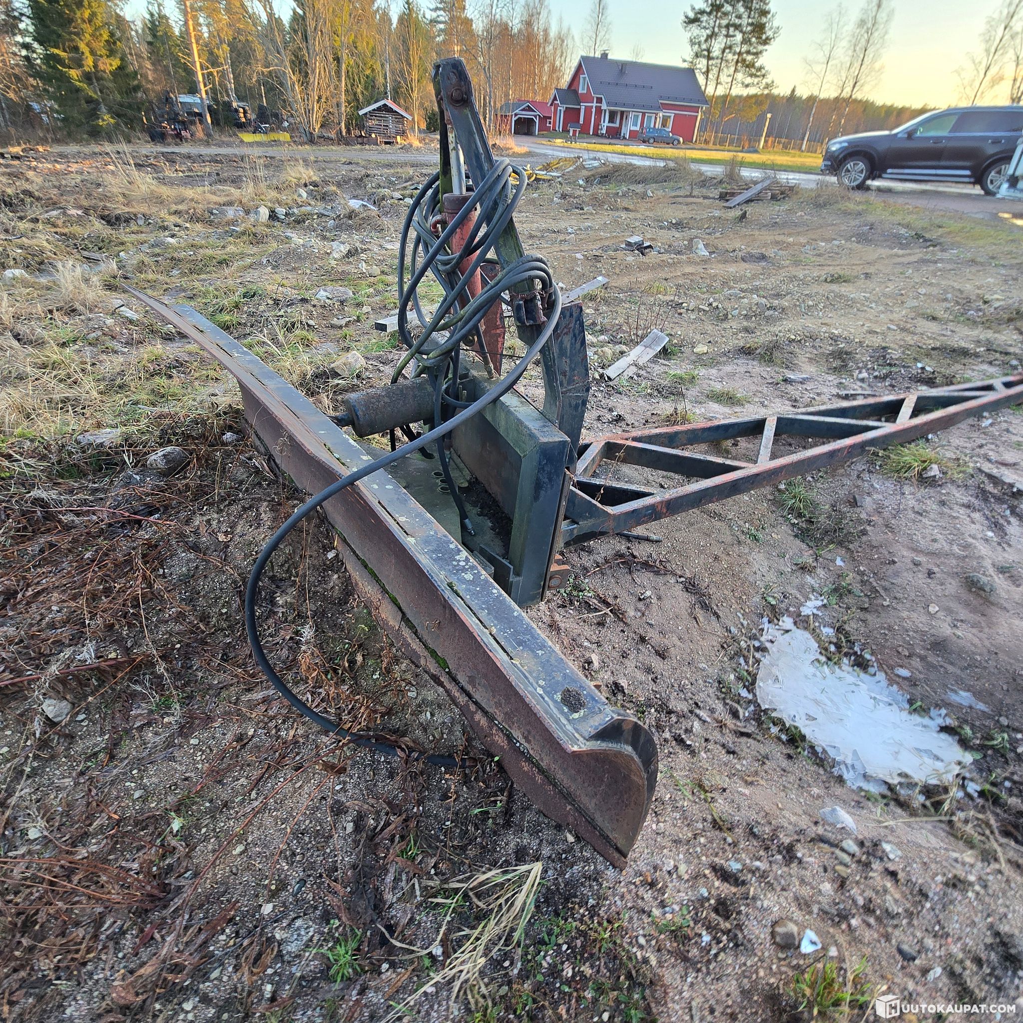 Plough that came with a Valmet 655. A bolt-on front mounting bracket is included but not shown in the pictures. Plough width approximately 270 cm and it has a hydraulic swivel for the mouldboard.