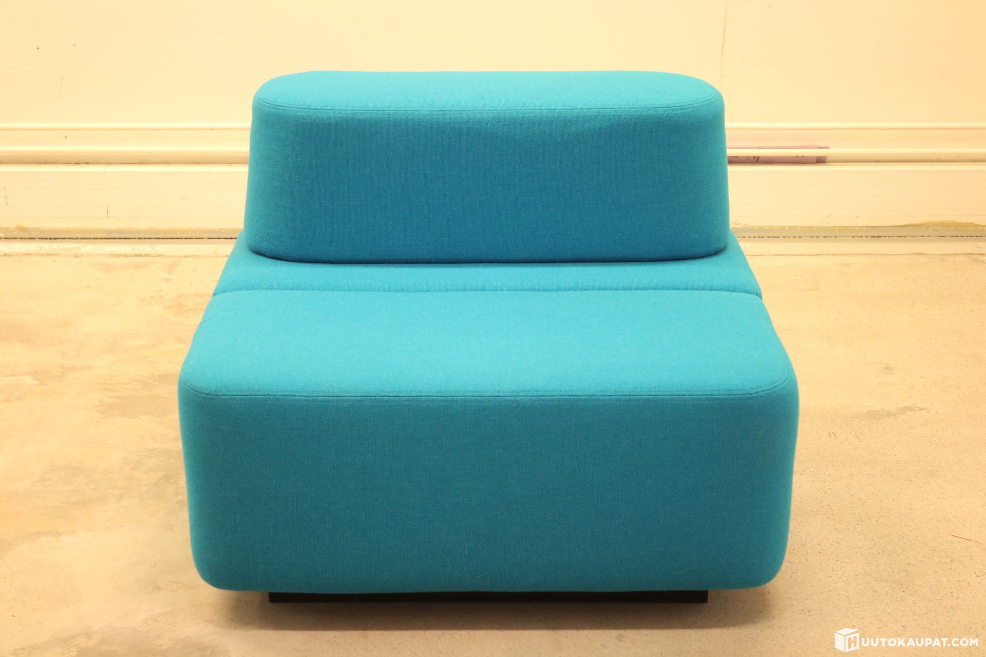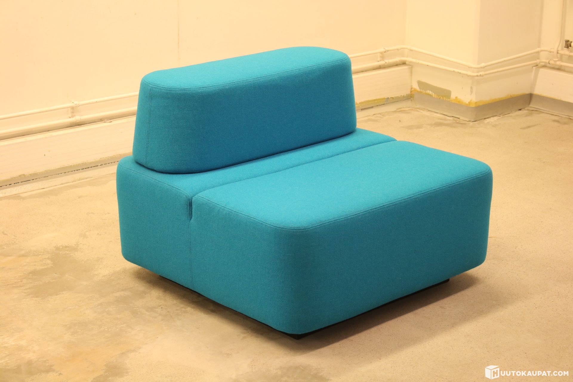 Clean condition Martela Movie ottoman. Wooden plinth at the base. Colour: Turquoise