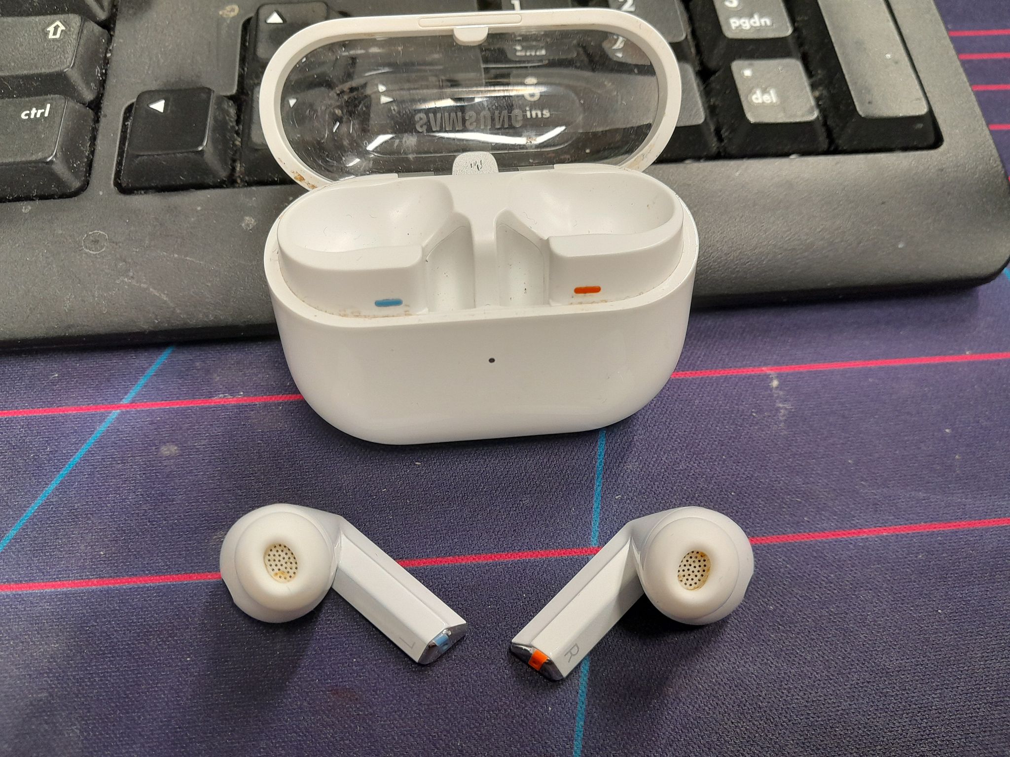 Used. Includes earbuds, charging case and charger.