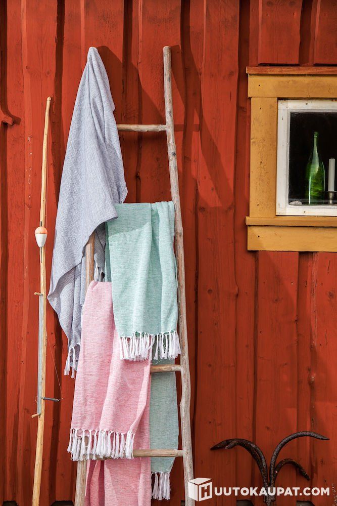 "Everyday luxury made from recycled cotton (70 %) with the Hamam towel. The towel feels pleasant against the skin and dries quickly. It packs into a small space and is easy to take on trips or to activities.