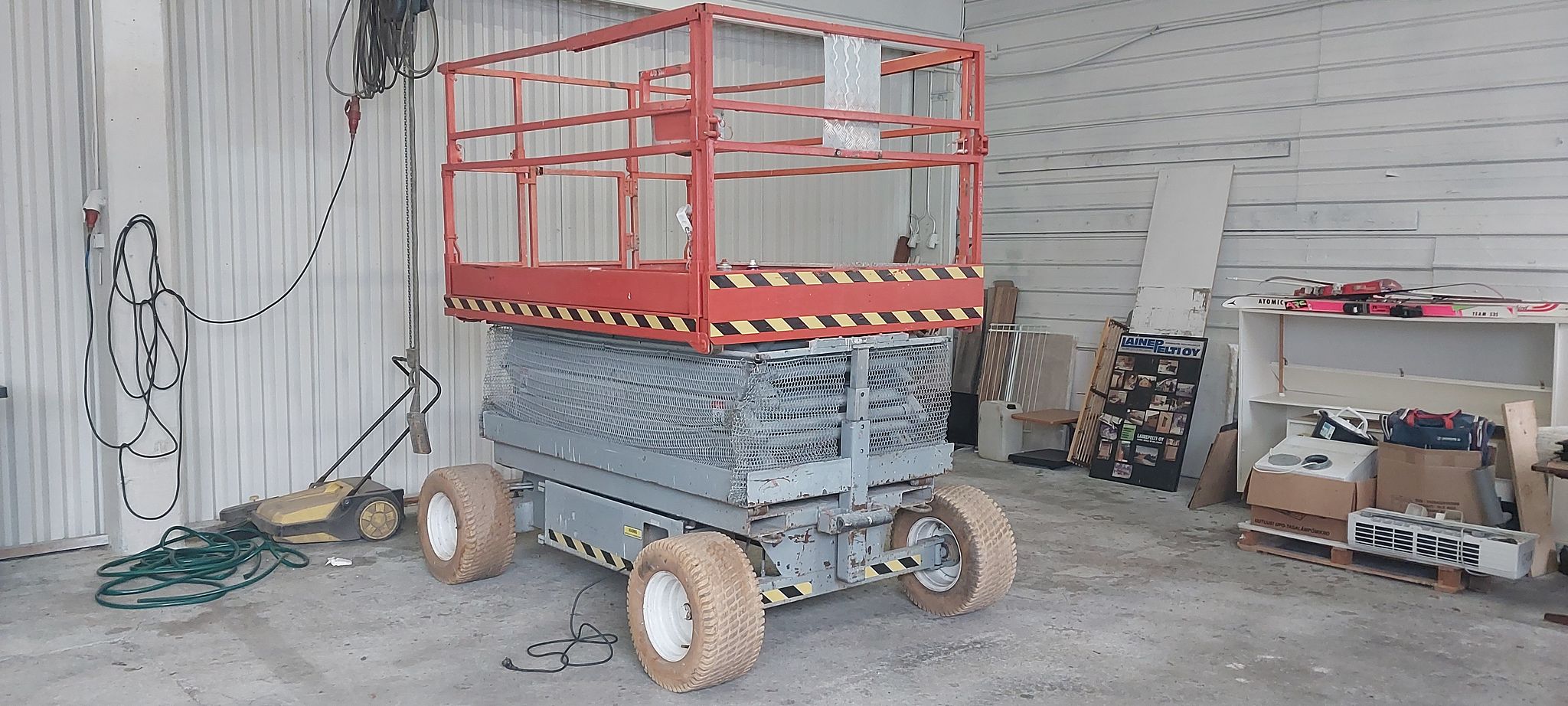 Notes: tyres poor, boom welded, battery poor, many covers broken, safety bar modified.