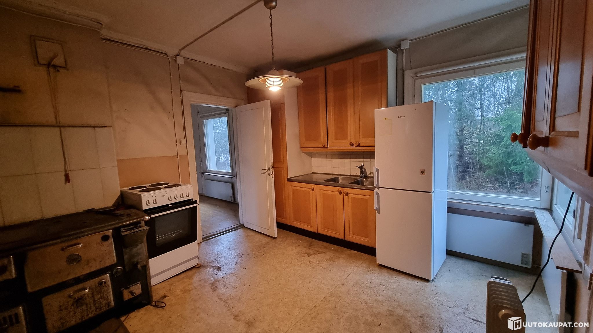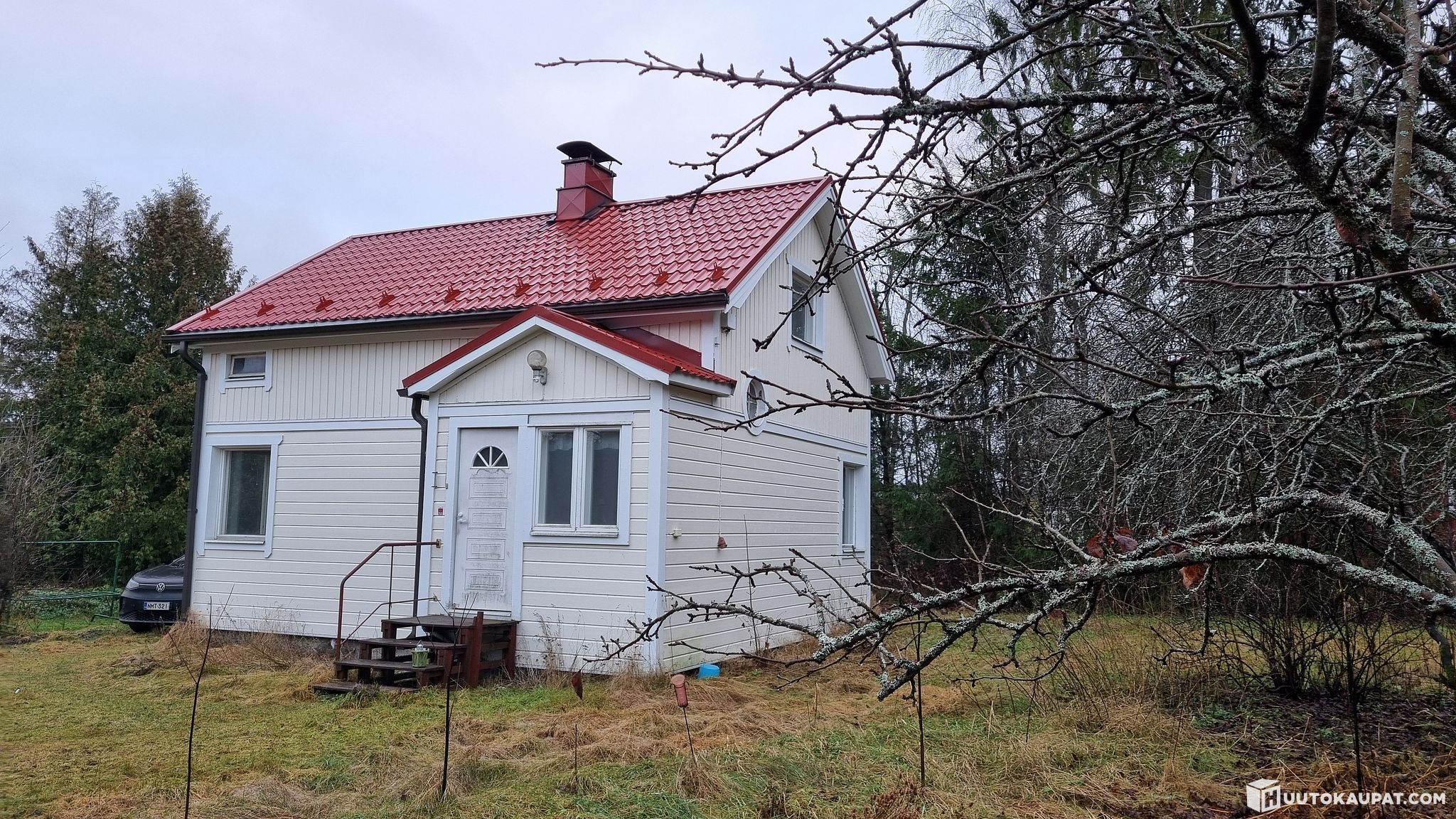 Detached house completed in 1939 and a log sauna building completed in 1984 in a peaceful location at the end of a cul-de-sac, in the immediate vicinity of the Kokemäenjoki river. The town centre services are only a few kilometres away. The house comprises a living room and kitchen on the main floor and two rooms on the upper floor. The outbuilding contains washing and sauna facilities, a fireplace room and a WC. The roof, windows, exterior cladding and electrical systems, among other things, have been renewed in past years. The property has municipal water and sewer connections. Electric panel heaters and fireplaces are present, though the fireplaces have not been used in recent years. The property requires refurbishment, e.g. parts of the subfloor (some sagging in the floor). No condition inspection has been carried out; the buyer will perform any checks they deem necessary independently. The property is also suitable for recreational use.