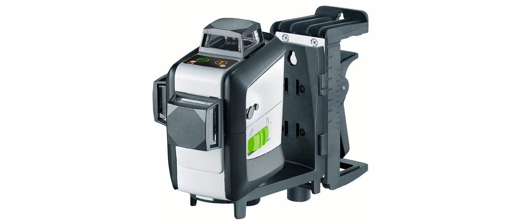 3D laser: one horizontal and two vertical green 360° laser planes. Plumb function. Individually switchable laser lines. Tilt function. Clamp mount. Lithium battery.