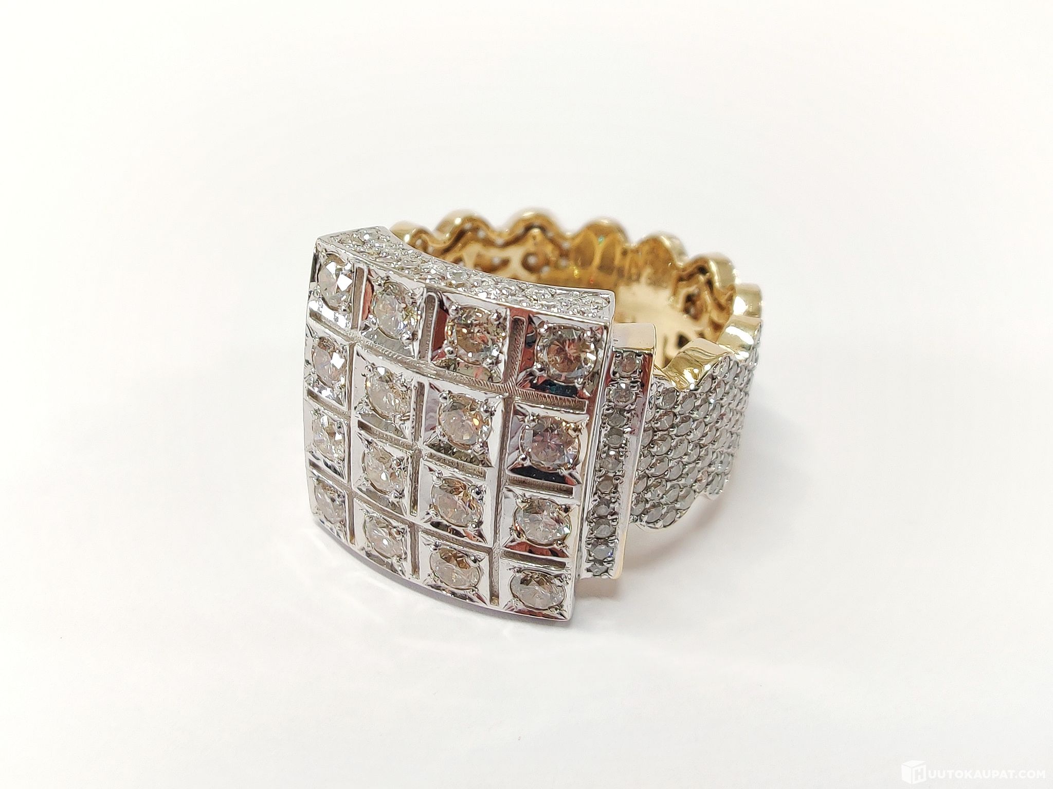 Striking men’s diamond signet ring in 585 gold (14 kt). Fully set with diamonds — a true "bling bling" piece with superb craftsmanship!