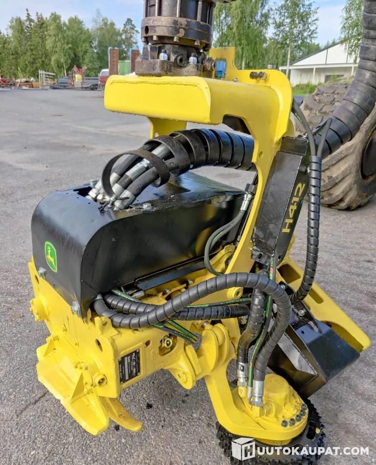 For sale: a working John Deere H412 harvester head, 2011. The grapple was refurbished by us in 2024 but it has NOT gone through our full overhaul in which, for example, drive motors and cylinders would be rebuilt. However, nearly all hydraulic hoses have been replaced, worn pins and bushings have been changed, the grapple frame has been welded and reinforced with strengthening plates, etc. The head can be viewed at our premises Nahkurintie 4, 38600 LAVIA.
