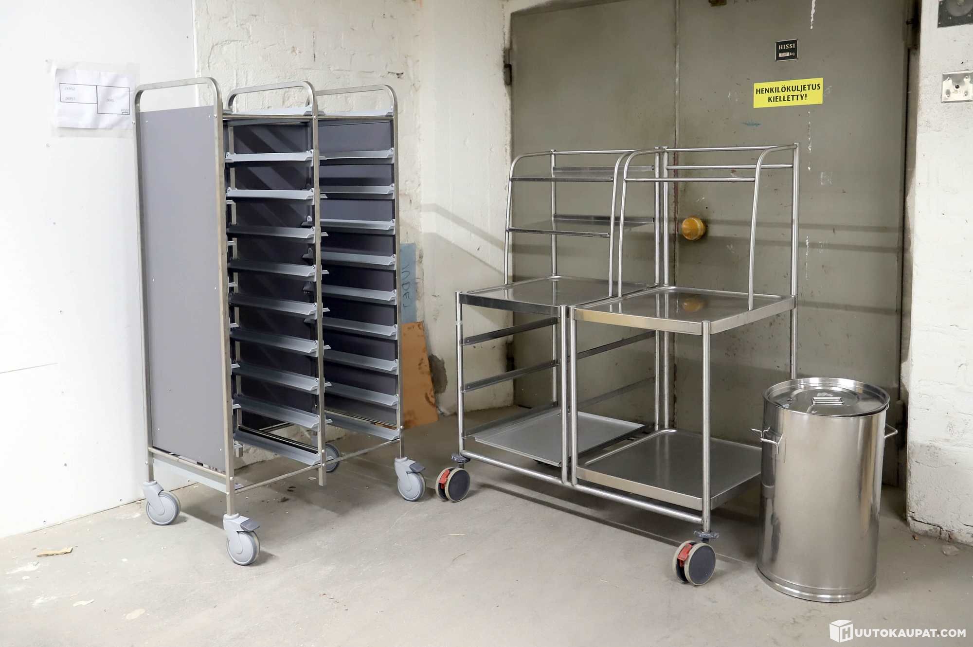 Stainless steel bin 1 pc and dish return trolleys 2 pcs.