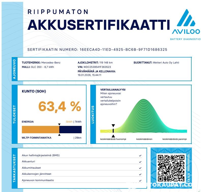 Top-spec premium car at a good price. Battery test shows SOH of 63.4% — not completely perfect, but the car runs faultlessly. The previous owner had the car for five years.