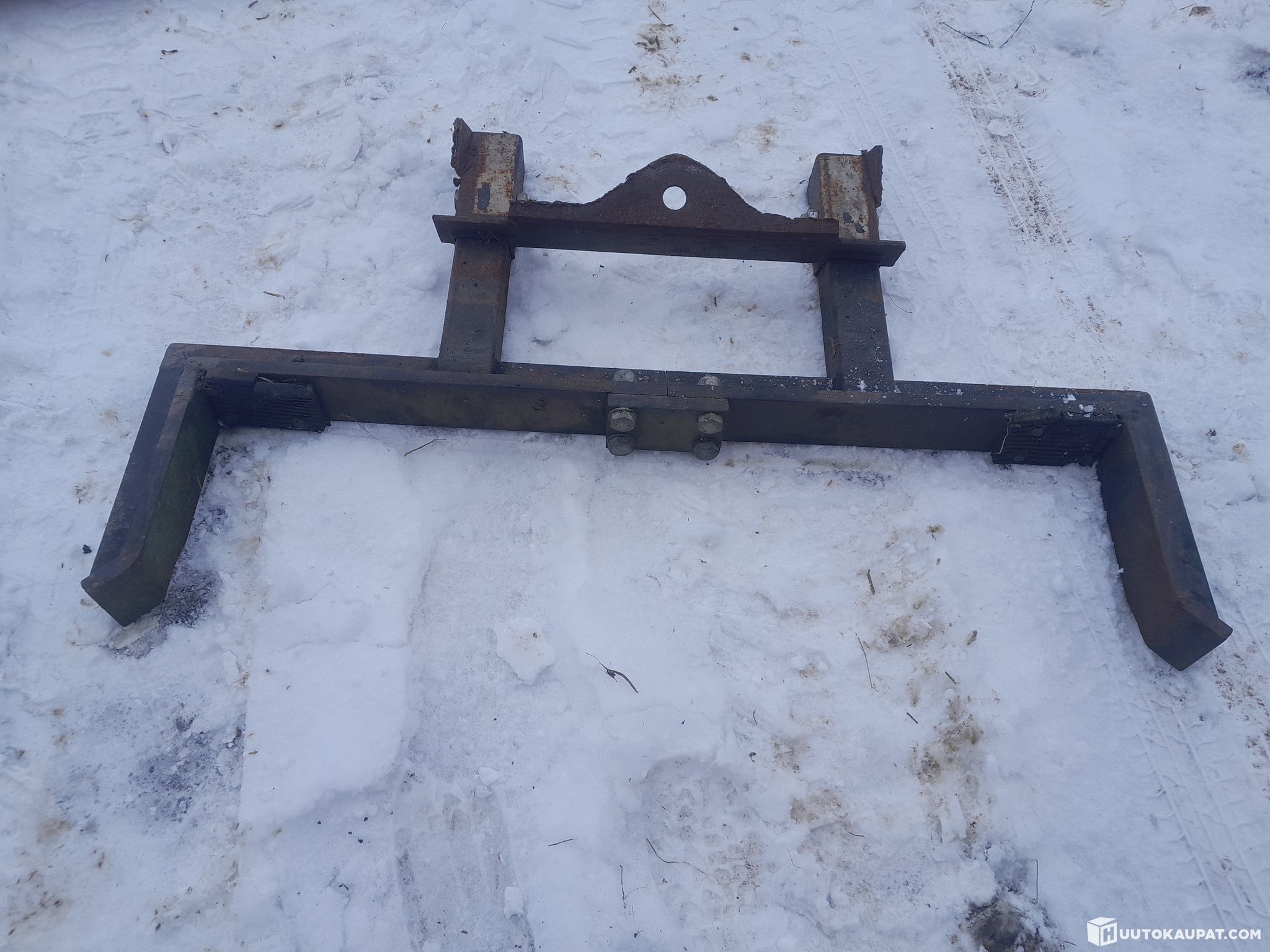 Front loader support that attaches to the original Massey Ferguson weight bracket. Has been fitted on the 7700 and 6400 series. The distance can be adjusted. Other equipment visible in the picture is not included in the sale.