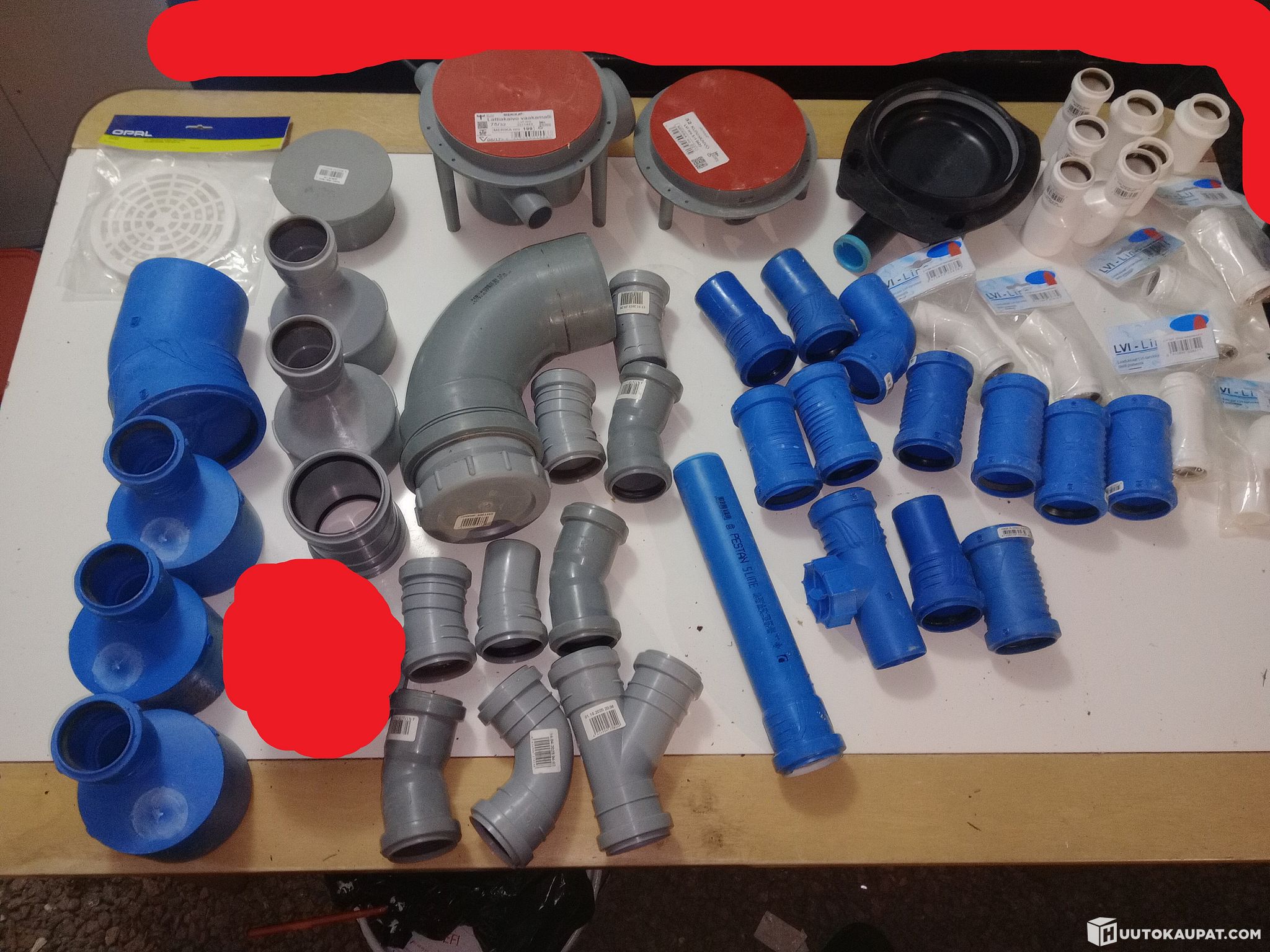 Plenty of 160 mm SN8 parts and 110 mm desibeli drain parts, plus other assorted items.