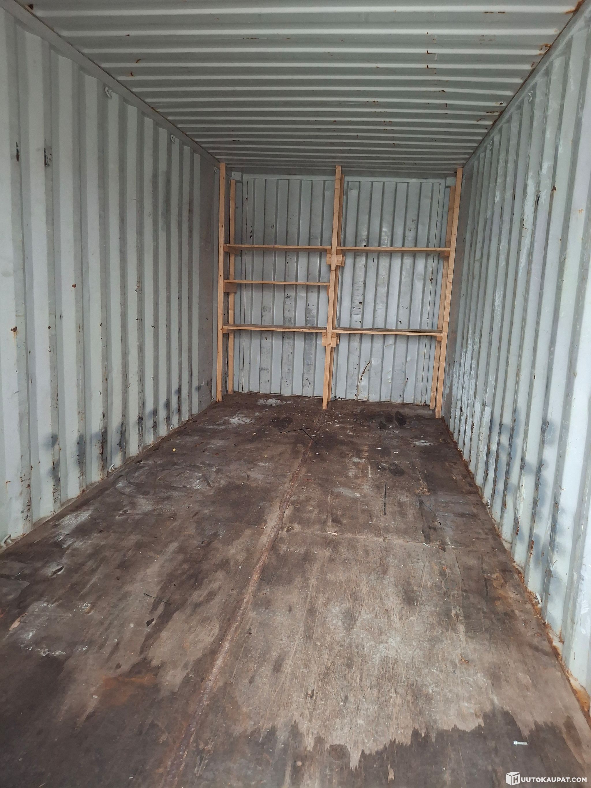 Unstable wooden shelves on the rear wall.