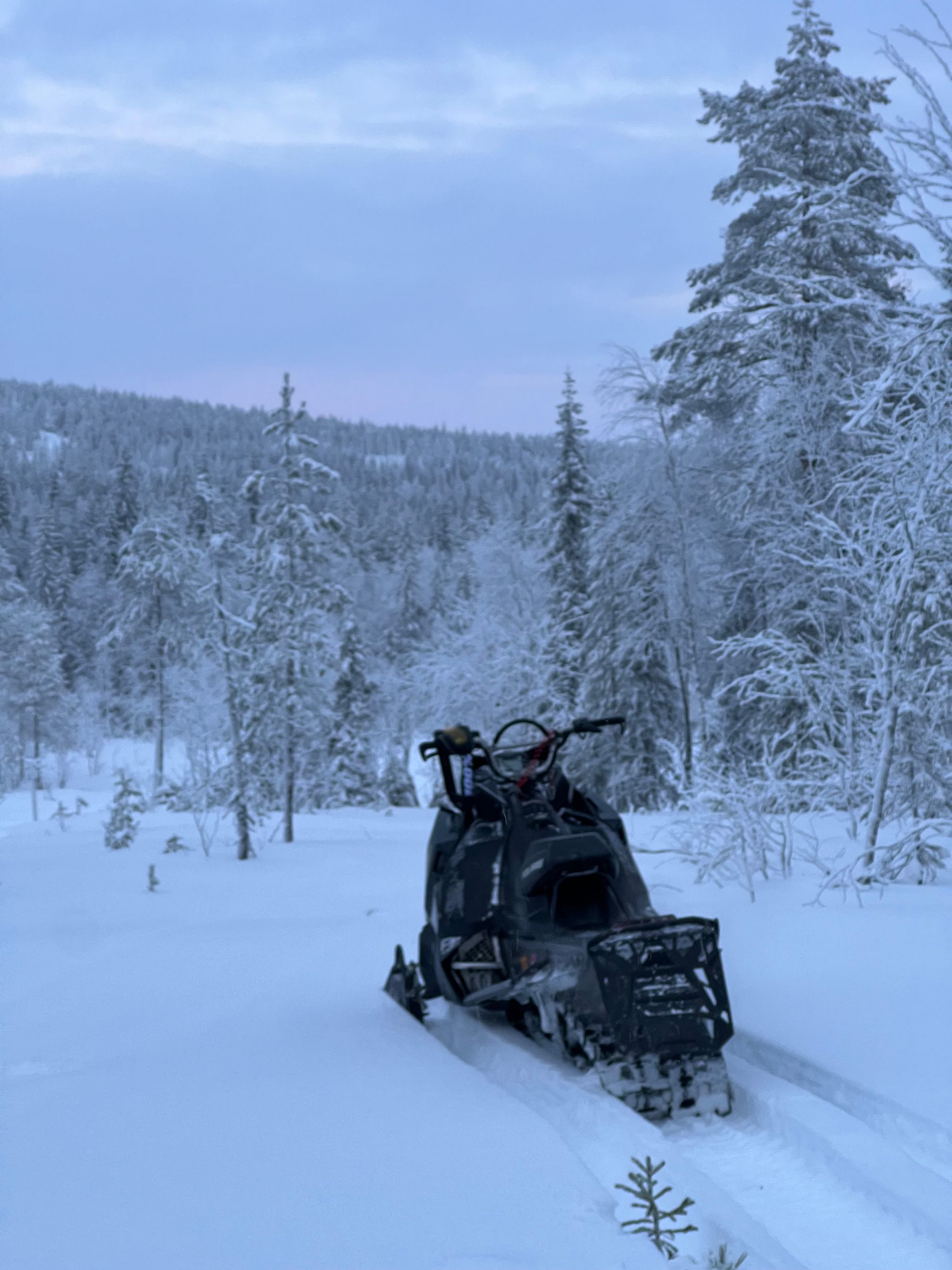 An excellent trail sled fitted with a studded track and electric start — plenty of power without extra weight.