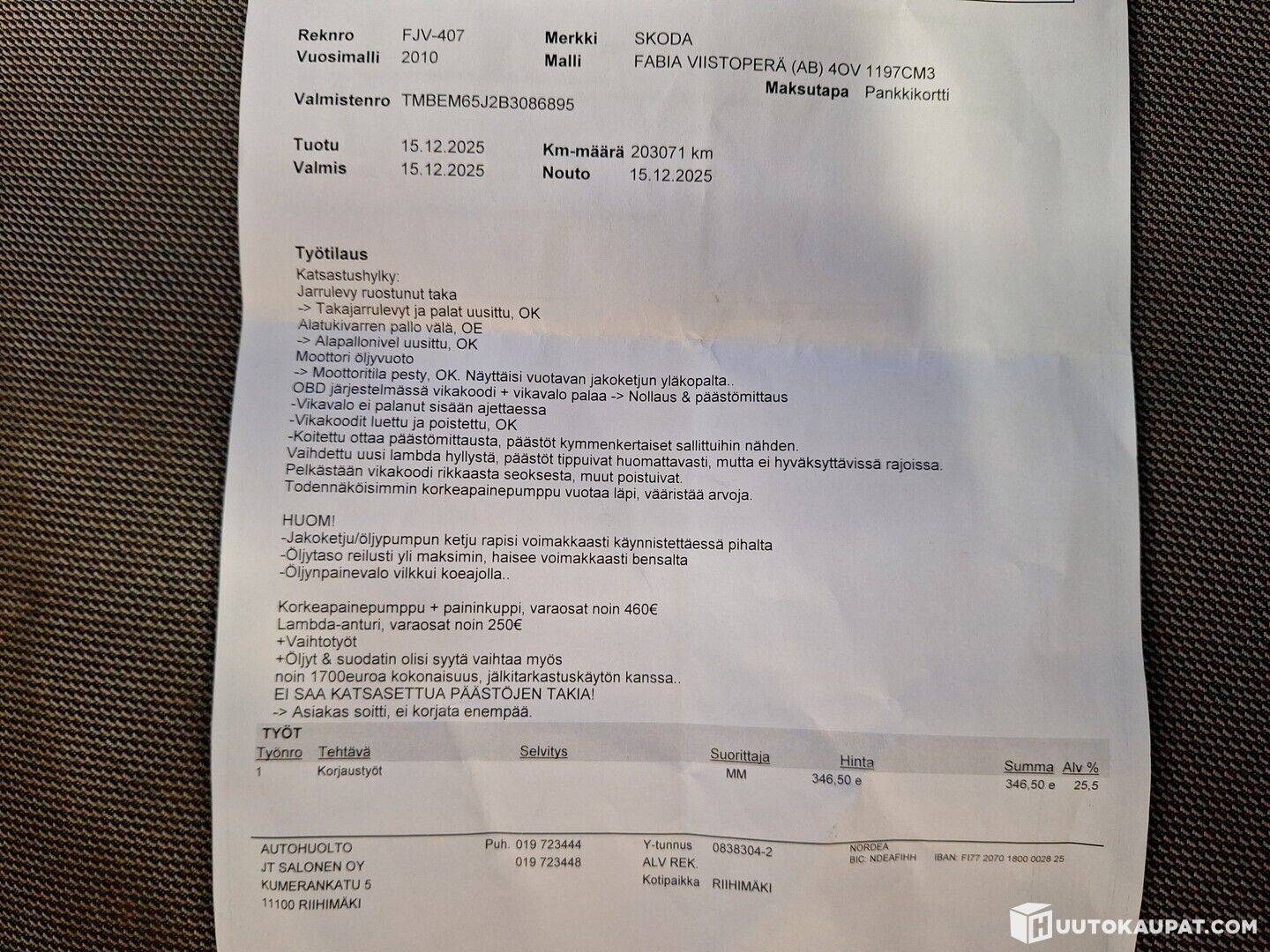 Varsinais-Suomen Autocenter Oy lists, Huutokaupat.com sells