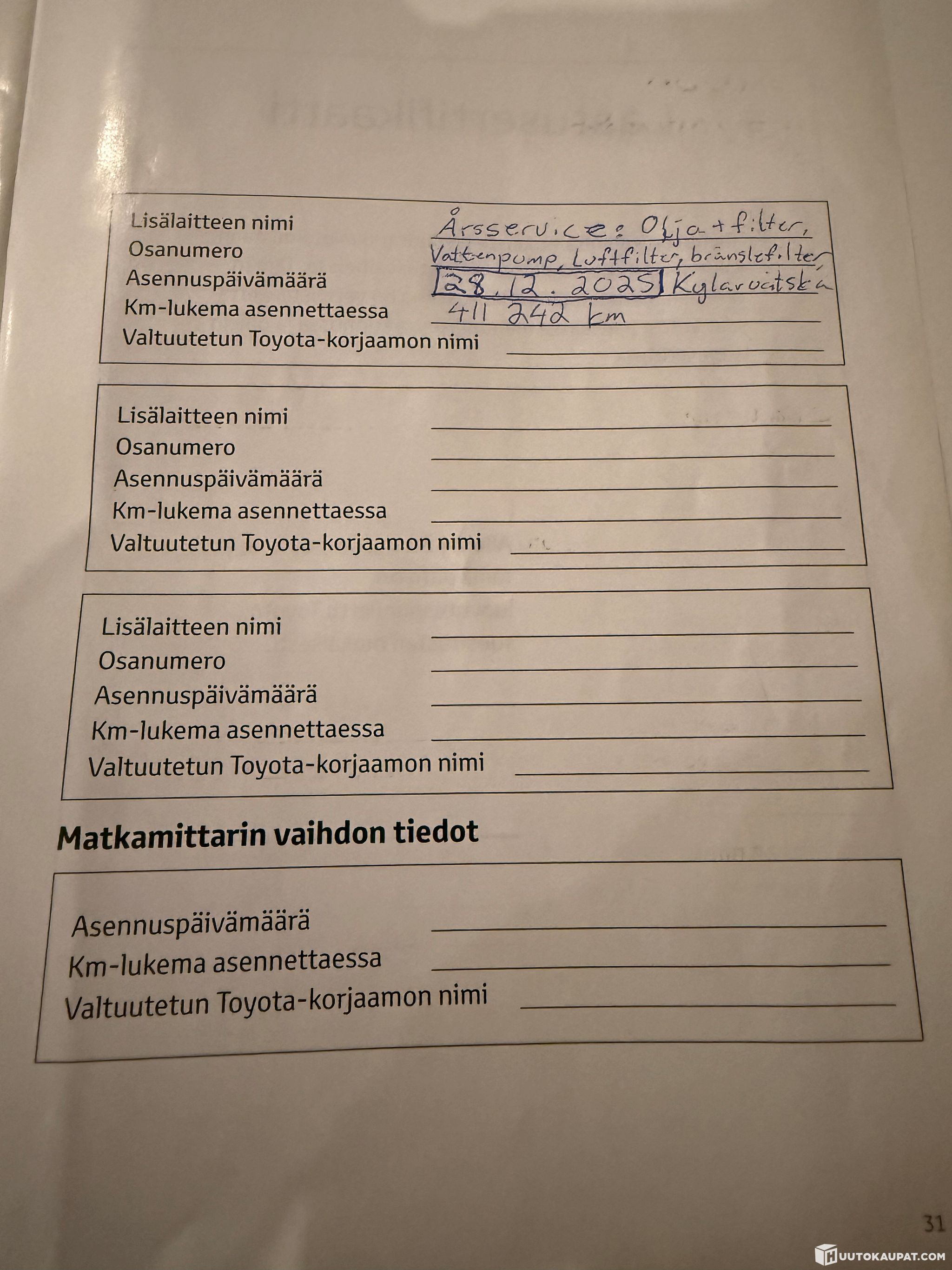 The vehicle must be collected within 7 days of the auction ending unless otherwise agreed - Huutokaupat.com.