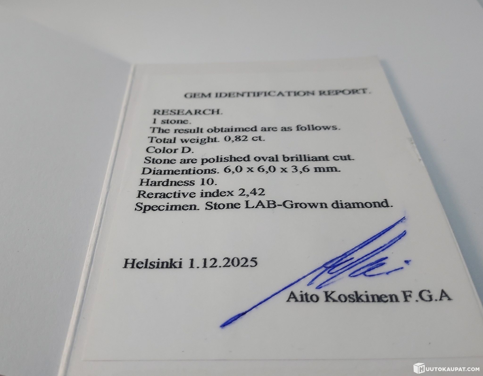 Delivered by insured post. Certificate of authenticity included.