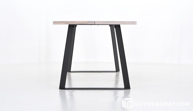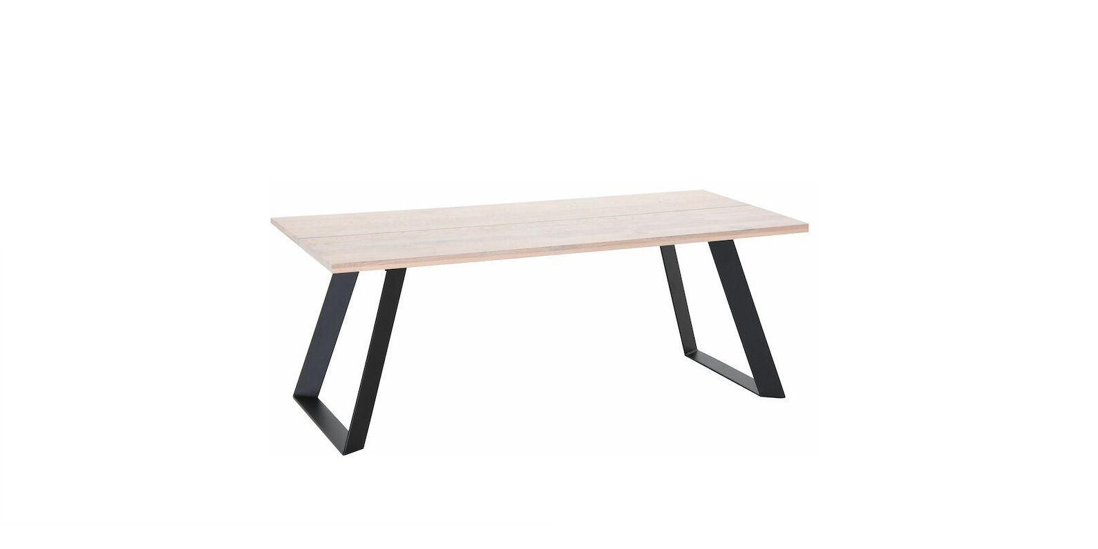 The Triangel oak dining table with powder-coated metal legs is an eye-catching piece. The tabletop is 3.6 cm thick solid oak and the sturdy legs are powder‑coated metal. The tops are made from glued laminated panels, with an effort to select boards of similar shades, but as with natural wood, colour variations may occur between pieces. Each table is unique; the wood tone and grain vary depending on the tree's growing conditions.