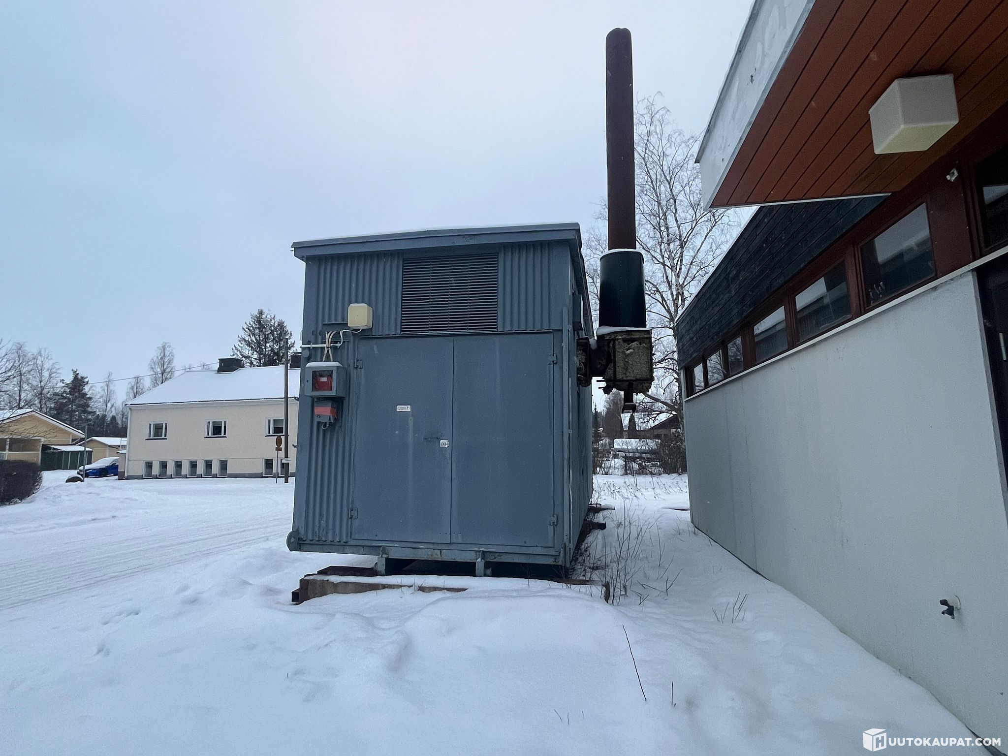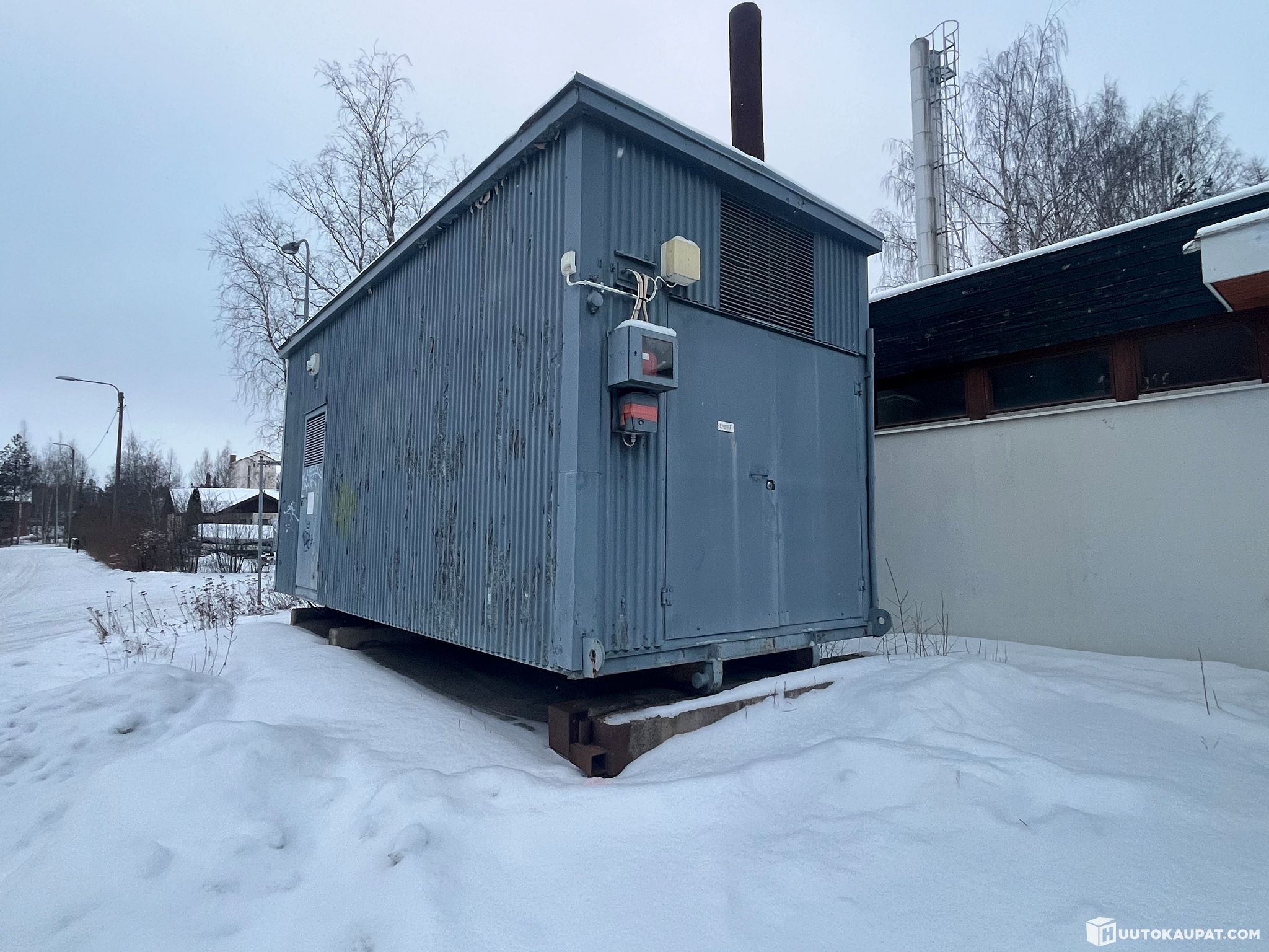 Heating plant building total width 2.9 m length 7.0 m height 3.5 m, flat-roofed, steel-frame, mineral-insulated element building