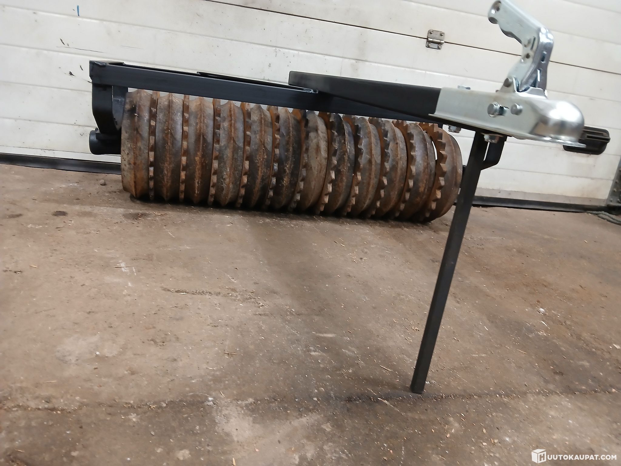 Towable roller with a standard new car-style towing head — can be towed by any vehicle with a towing ball. Working width is 1,100 mm, overall width 1,350 mm. Roller weight is 233 kg. Grease cups with grease nipples at the axle ends. Hook this roller behind a vehicle and start rolling — for lawn bases, game fields, horse arenas or other areas. Can also compact ski-track bases or other routes/tracks in winter. Delivery across Finland to your home can be arranged if needed. Due to its size it also transports well on passenger car trailers. Forklift loading is free when collecting. No collection fees or charges are applied. Collection times can be arranged flexibly in the evenings and at weekends. There is no rush on collection — timing can be agreed very flexibly if required.