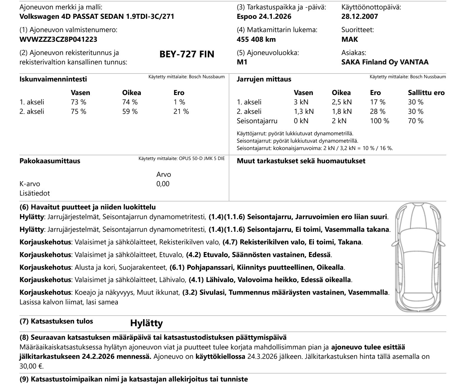 2007 VW Passat. The car has done 455,000 km, but the legendary and reliable 1.9 TDI diesel engine still runs well.