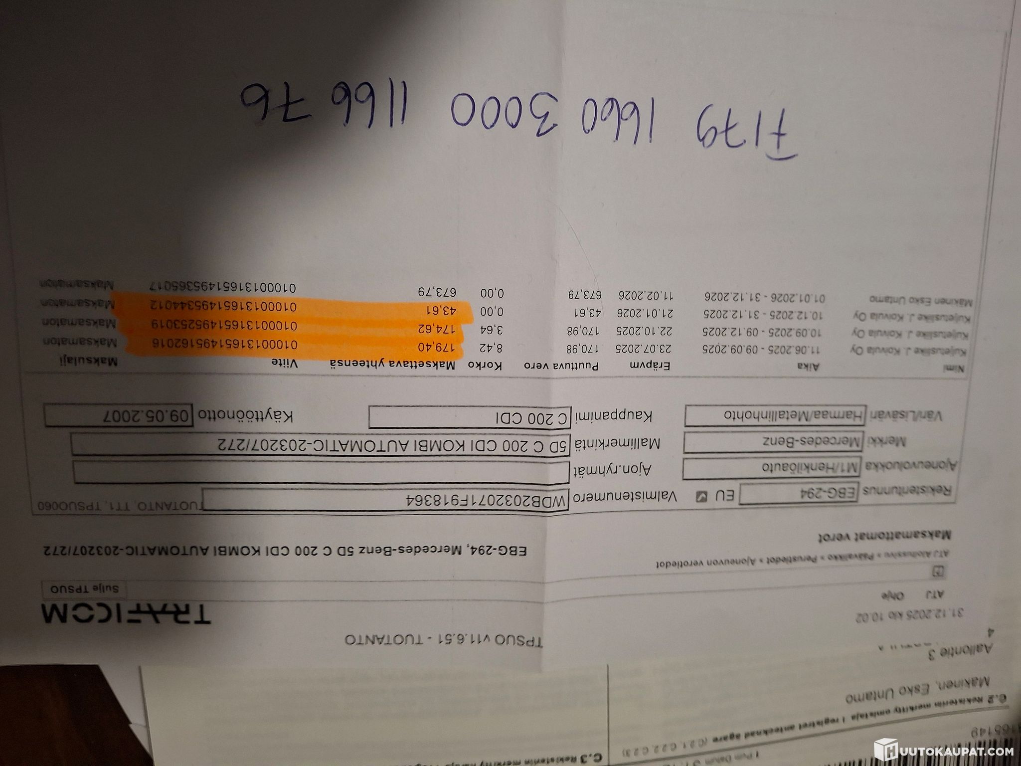 The vehicle must be collected within 7 days of the auction ending unless otherwise agreed - Huutokaupat.com.