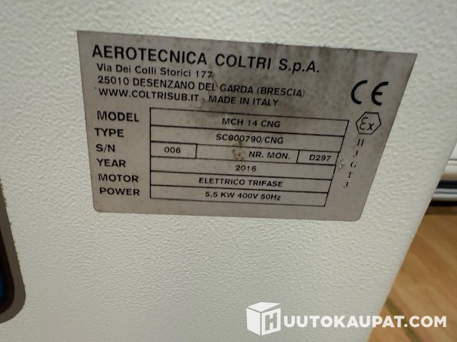 Coltri MCH 14 CNG is a powerful natural gas compressor designed for high-pressure filling. It offers () filling rate and operates at working pressure. The compressor is fitted with an explosion-proof (ATEX) electric motor and is optimised for reliable CNG refuelling and storage. Technical specifications (MCH 14 CNG):
