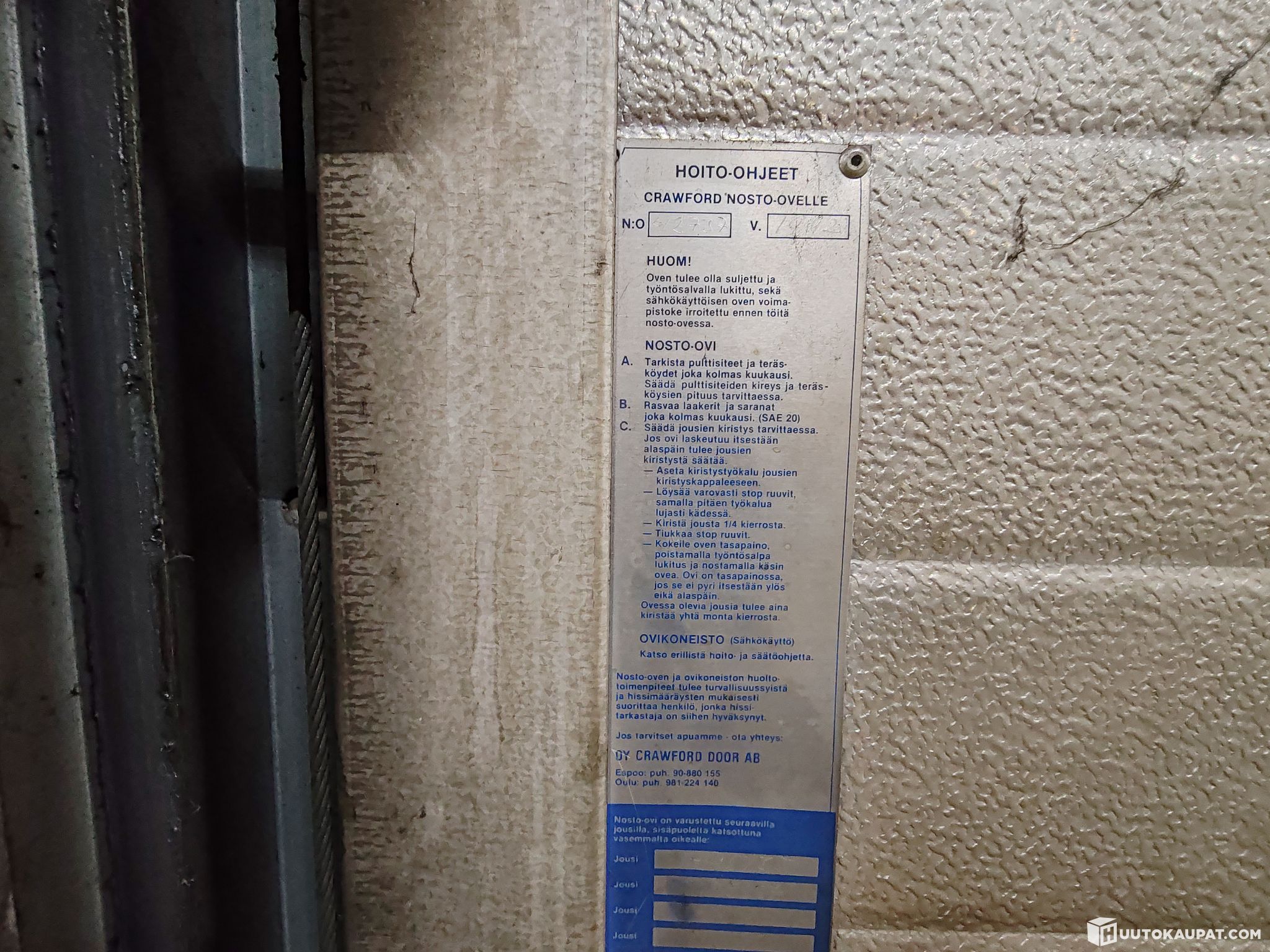 The intact Crawford up-and-over door shown in the pictures is being auctioned dismantled.