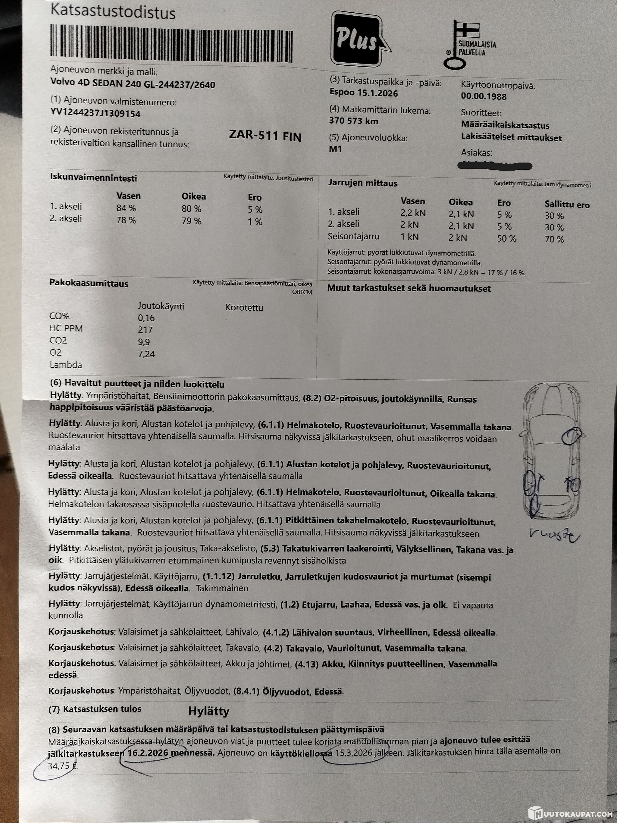 The vehicle must be collected within 7 days of the auction ending unless otherwise agreed - Huutokaupat.com.